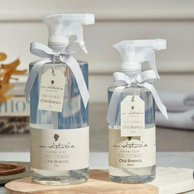 A fragância de chá branco é a queridíssima da M.Victoria. Traz uma sensação de ambiente cuidado, recém limpo,edredom fofo, branco nuvem.
