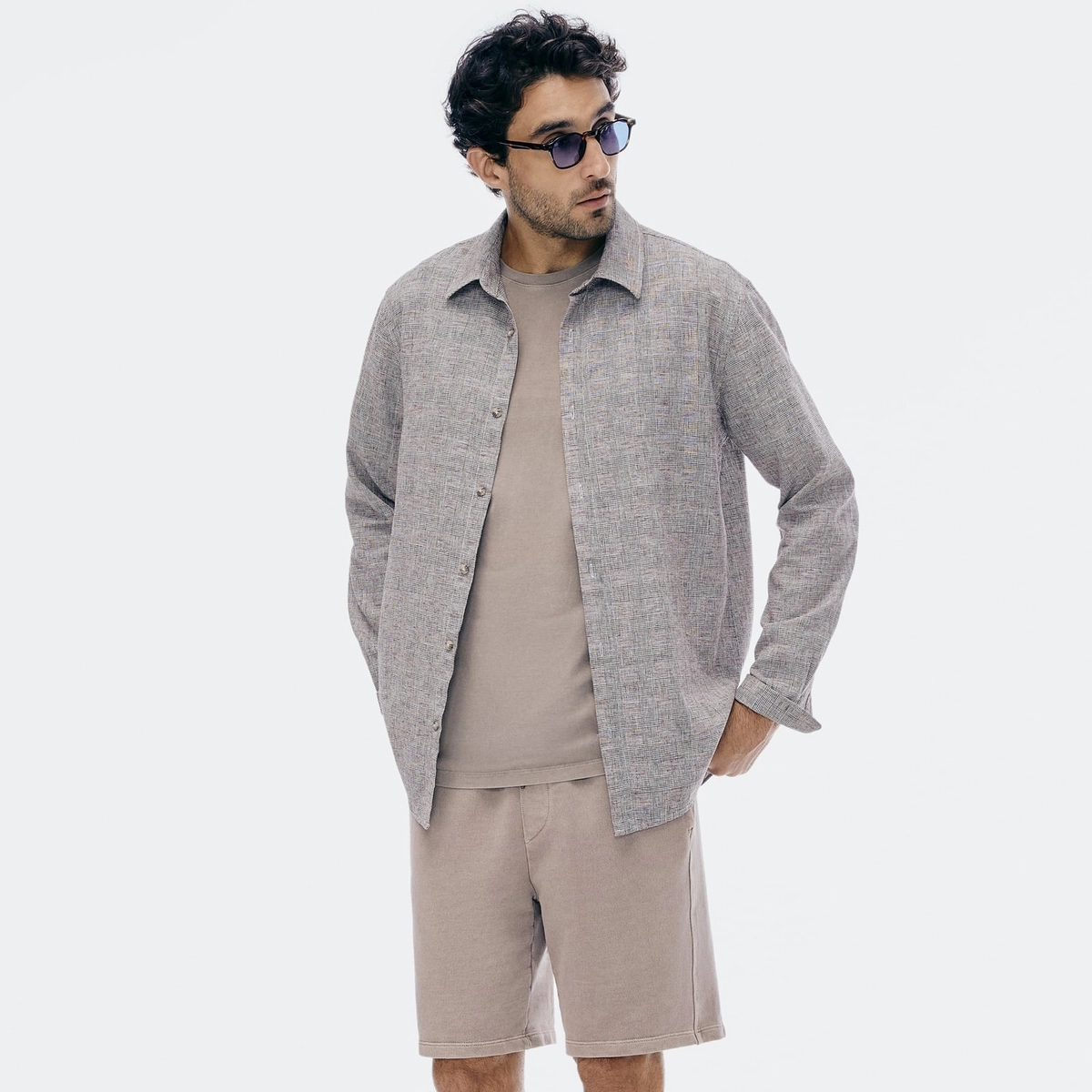 Bermuda masculina em malha de algodão, lavada, possui cós de elástico e ajuste. Modelagem regular, oferece conforto e praticidade.