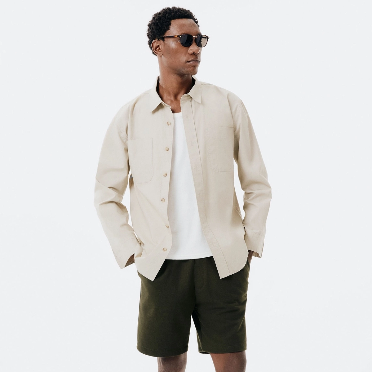 Bermuda em moletom piquet com modelagem reta, solta ao corpo. Possui cós com elástico, detalhe de pregas frontais, cordão para ajuste e bolsos faca.