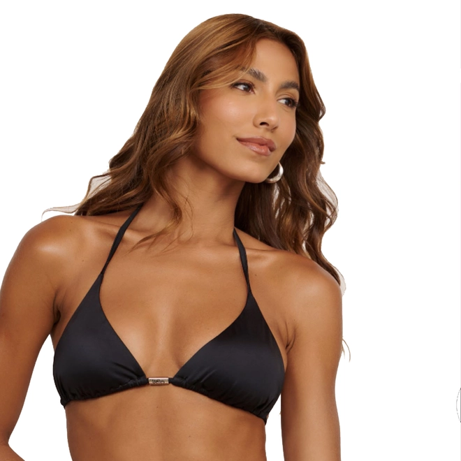 Ideal para quem busca um biquíni preto clássico, com acabamento premium, caimento impecável e um toque de exclusividade. Essencial para compor looks modernos e sensuais no verão.