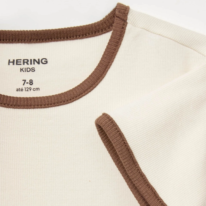 Blusa infantil confeccionada em ribana canelada com excelente elasticidade, proporcionando ajuste confortável ao corpo sem limitar os movimentos. Possui decote redondo e acabamento em contraste no decote e nas barras das mangas, que traz um toque divertido e moderno ao visual. Macia e versátil, é perfeita para o dia a dia das pequenas.