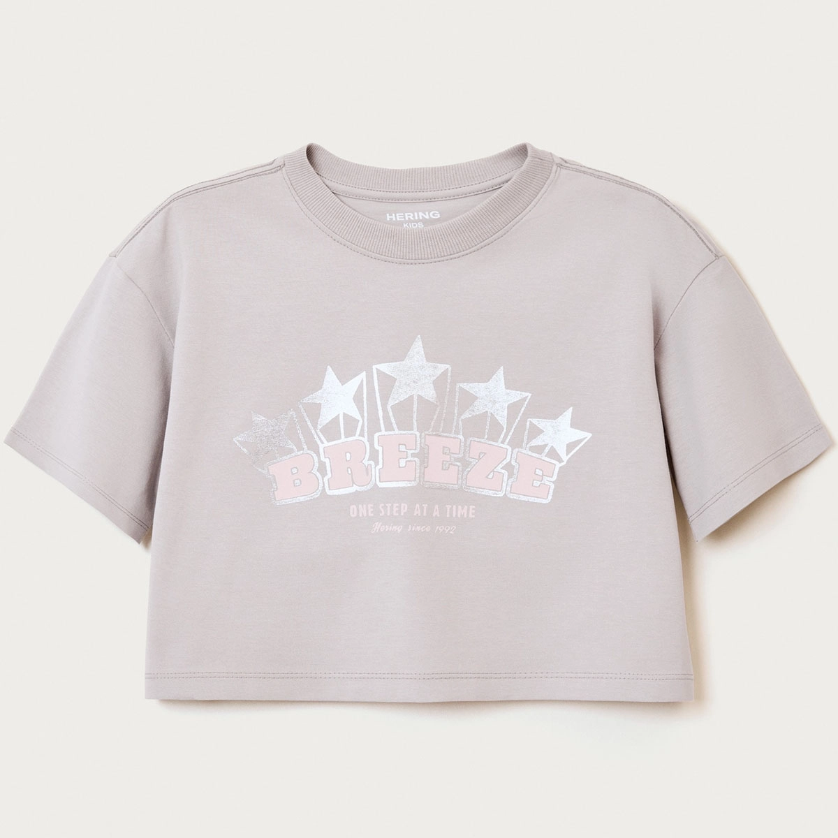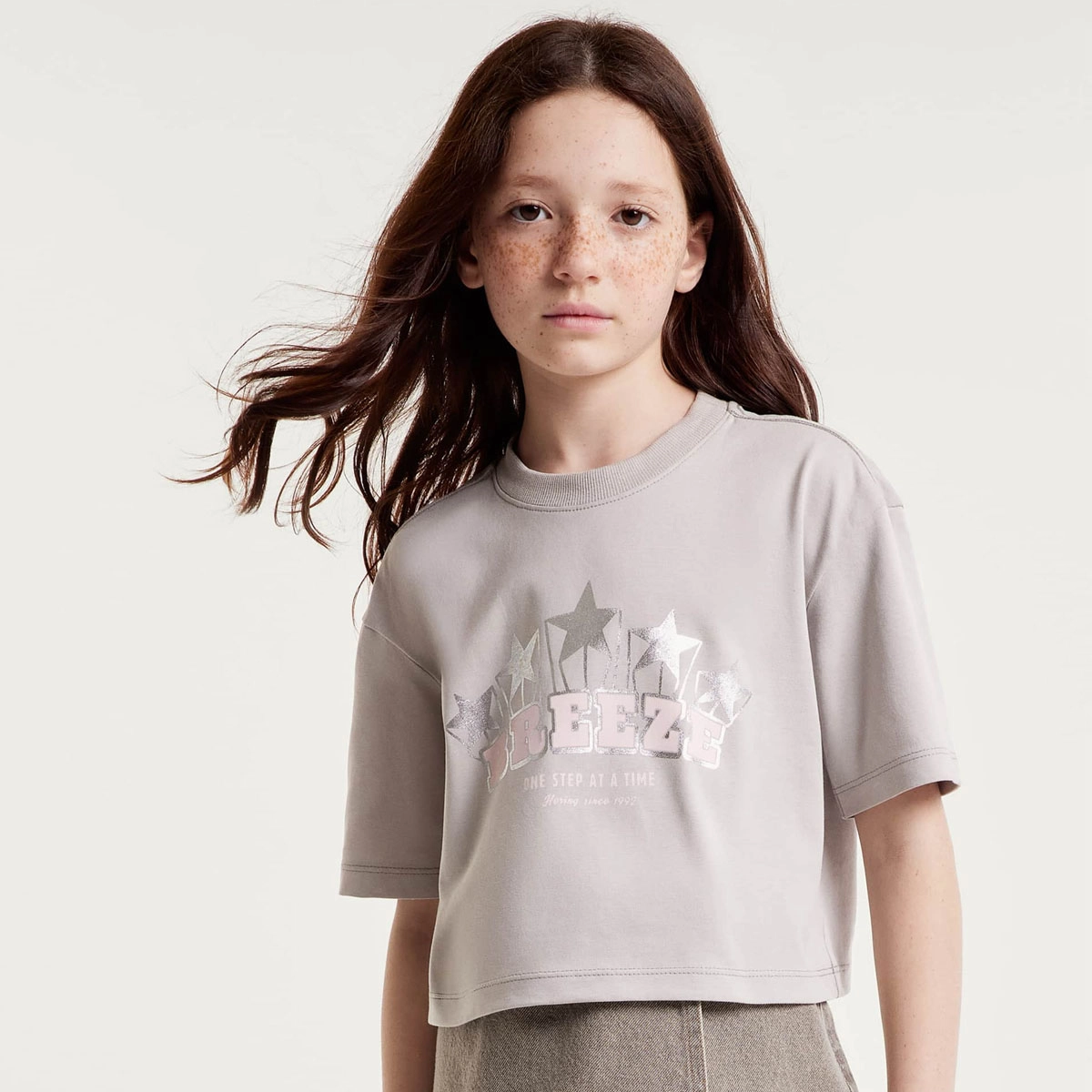 Blusa infantil confeccionada em malha super cotton, com toque macio e confortável para o dia a dia. Possui modelagem box, que apresenta caimento quadrado e levemente solto ao corpo, decote redondo e manga curta, garantindo liberdade de movimento. A peça conta com estampa localizada, que adiciona charme e estilo ao visual das pequenas.
