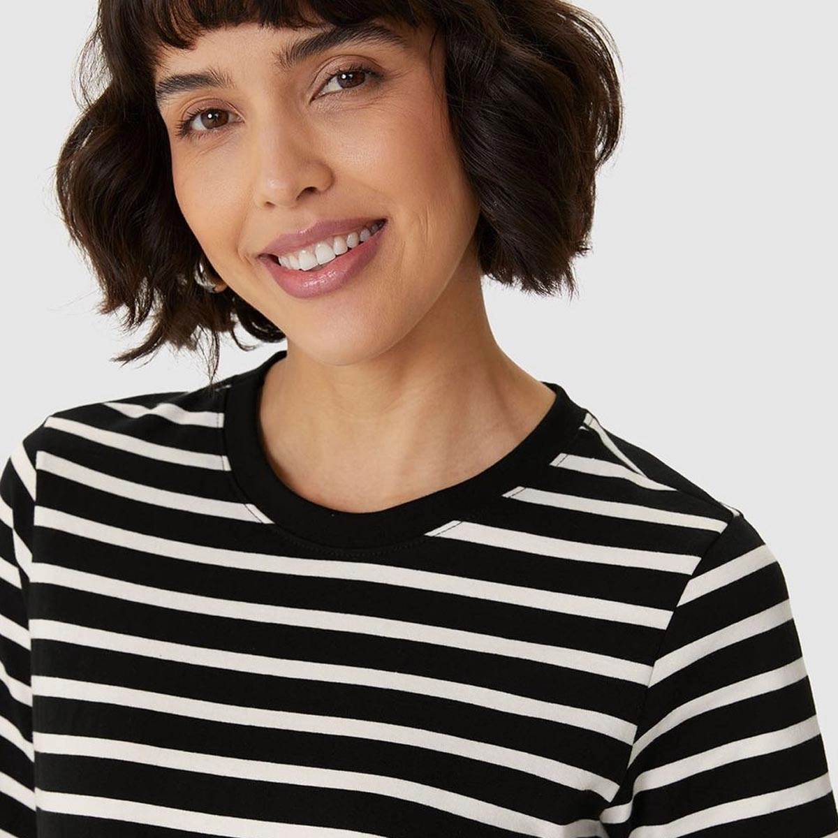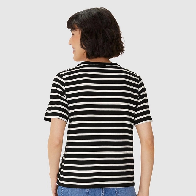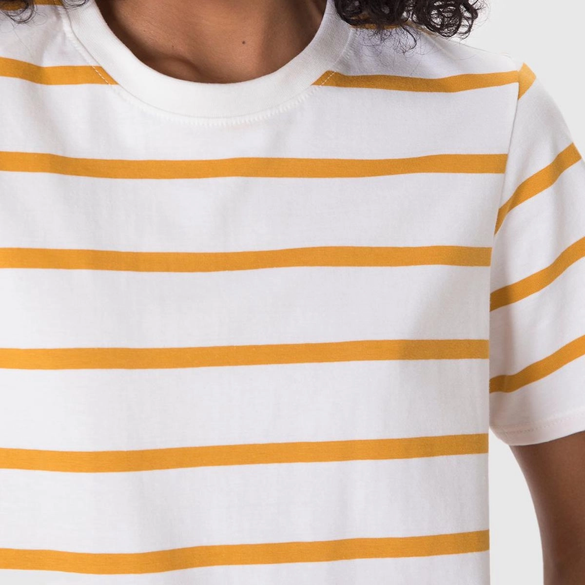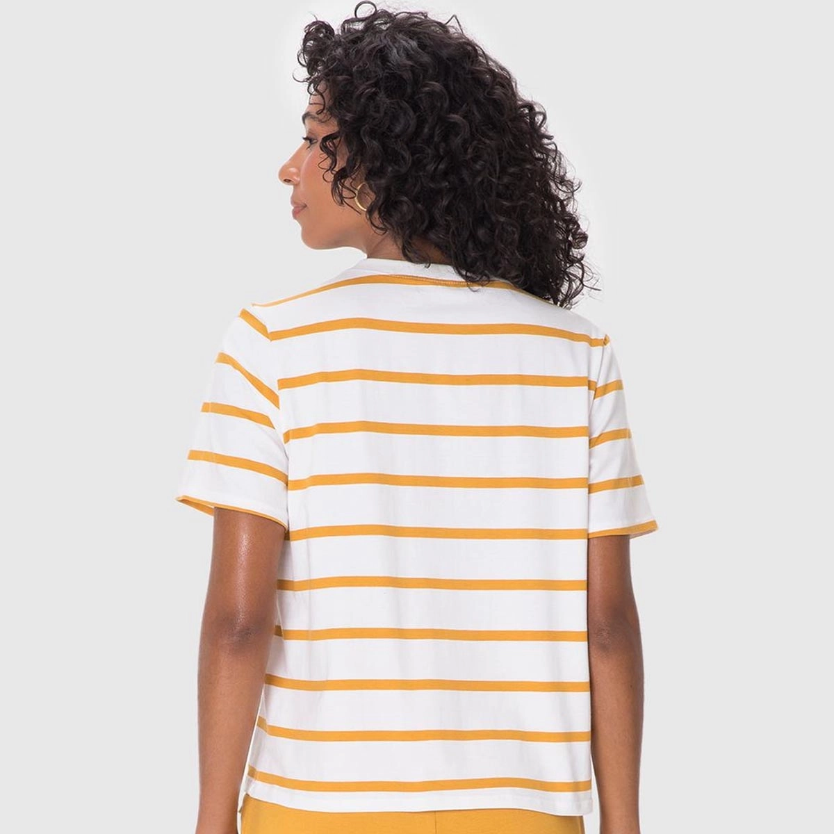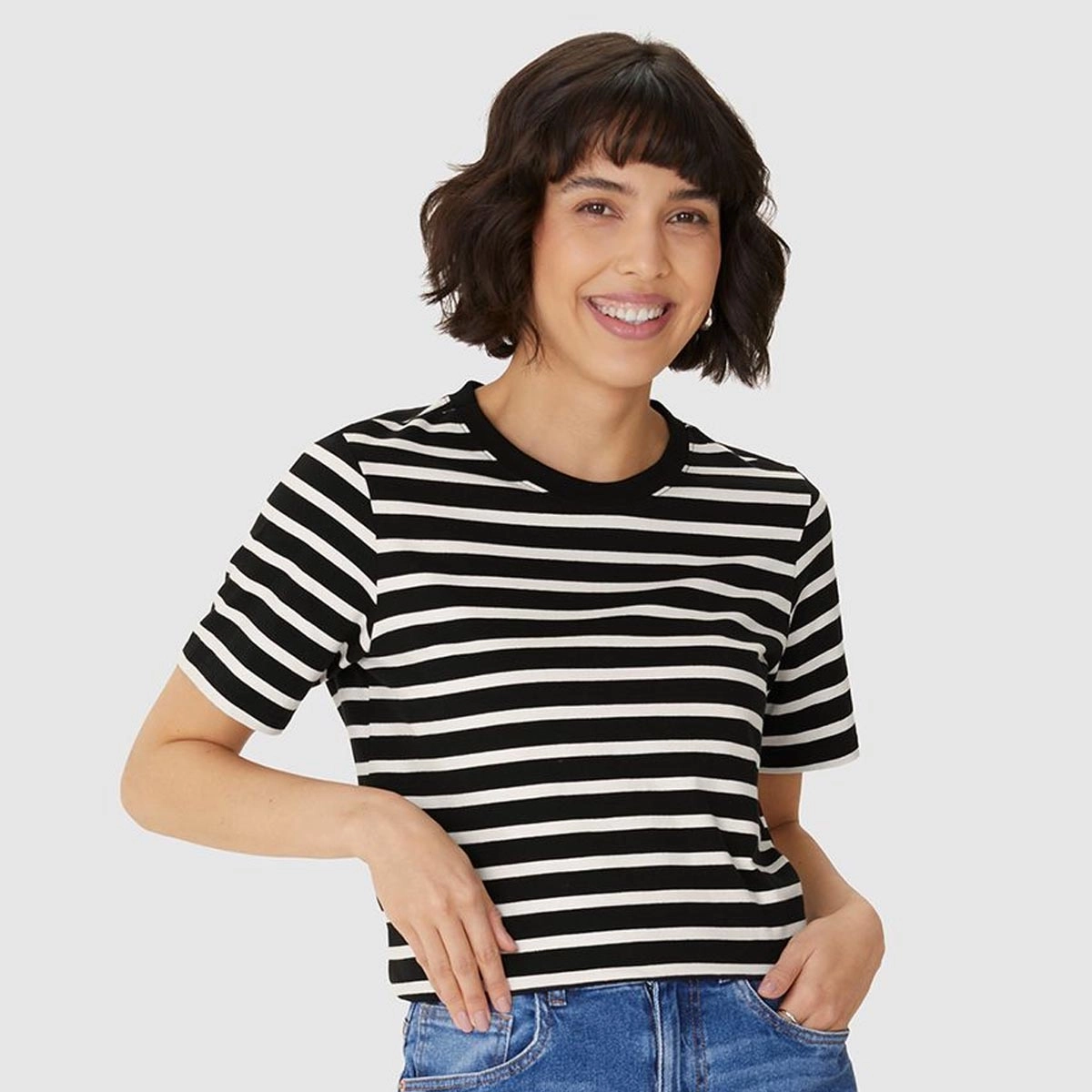 Camiseta Feminina Reta Manga Curta Em Malha Listrada