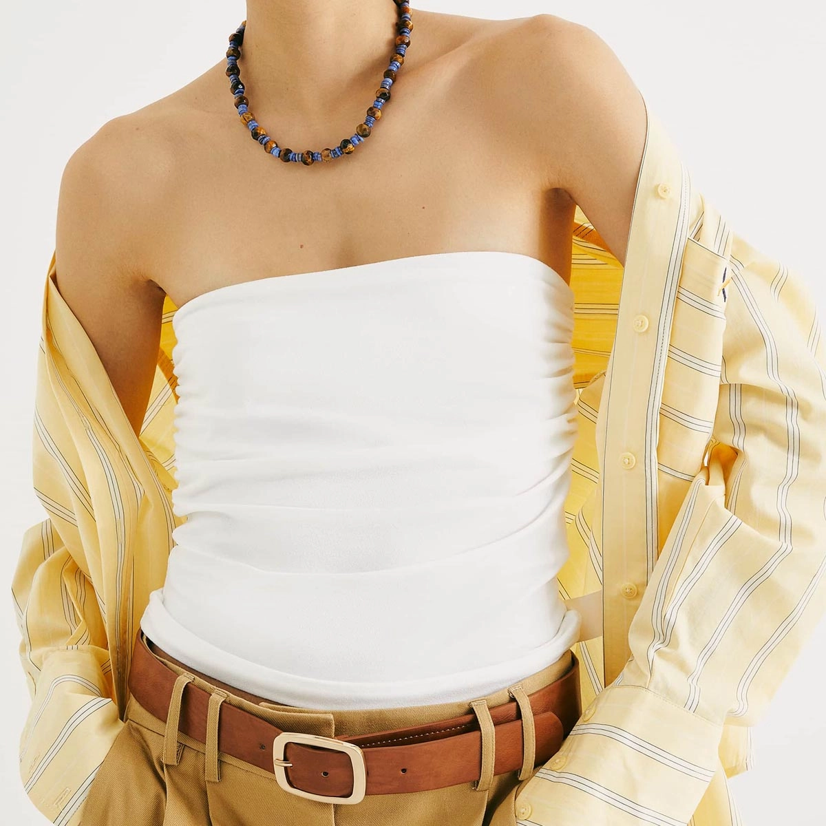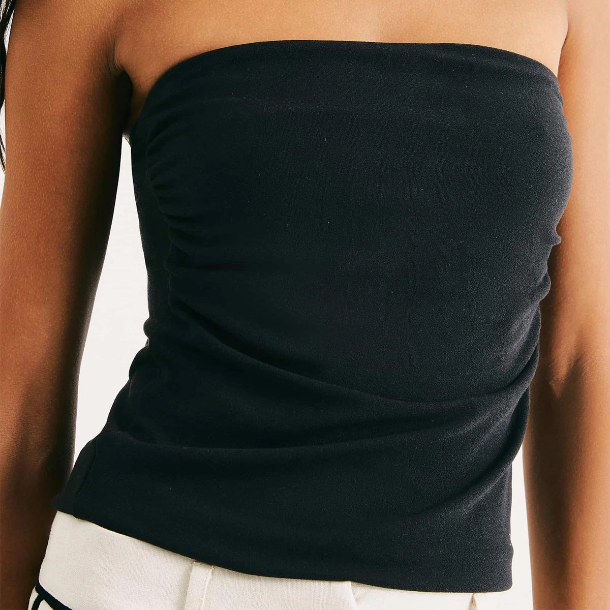 Moderno e cheio de estilo, este top sem alça é ideal para compor produções versáteis e sofisticadas. Confeccionado em malha crepe de viscose, traz toque suave e caimento elegante. A modelagem justa ao corpo valoriza as curvas com conforto, enquanto o drapeado lateral adiciona charme e movimento à peça. O forro no decote garante melhor acabamento e segurança no uso.