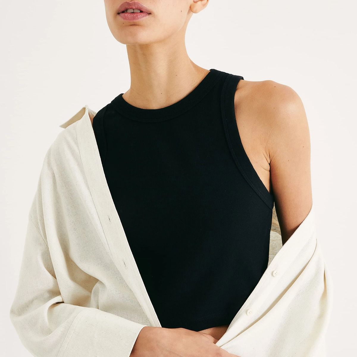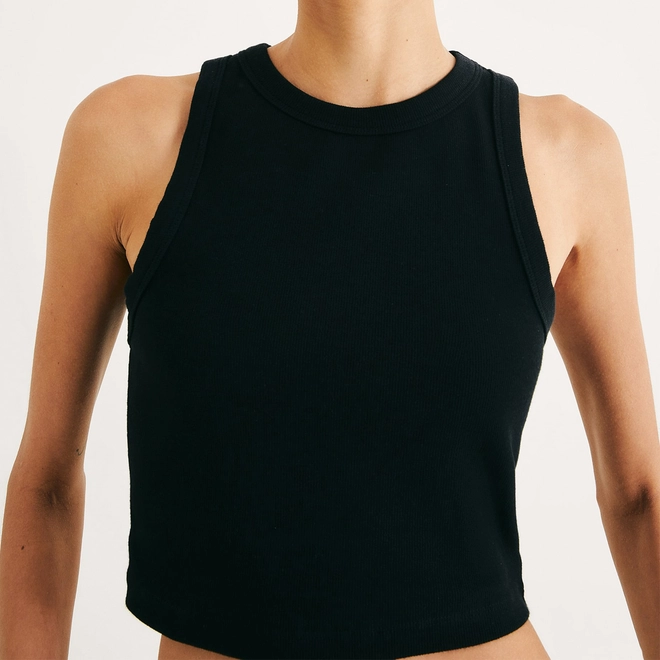 Regata feminina cropped decote halter neck em ribana, a protagonista de todas as estações. A peça é elaborada em malha de algodão com elastano, que promove conforto com fácil ajuste ao corpo. Possui modelagem bem ajustada e decote redondo mais próximo ao pescoço (halter neck).