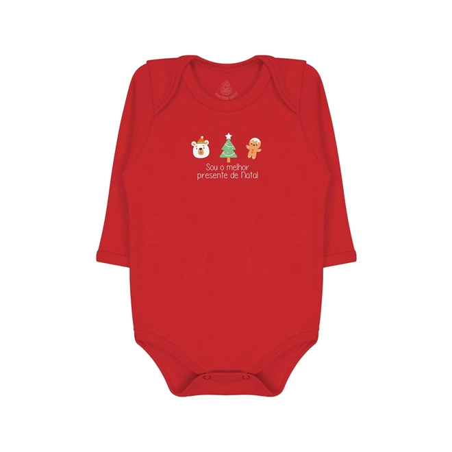 - Body infantil unissex manga longa com estampa Presente de Natal