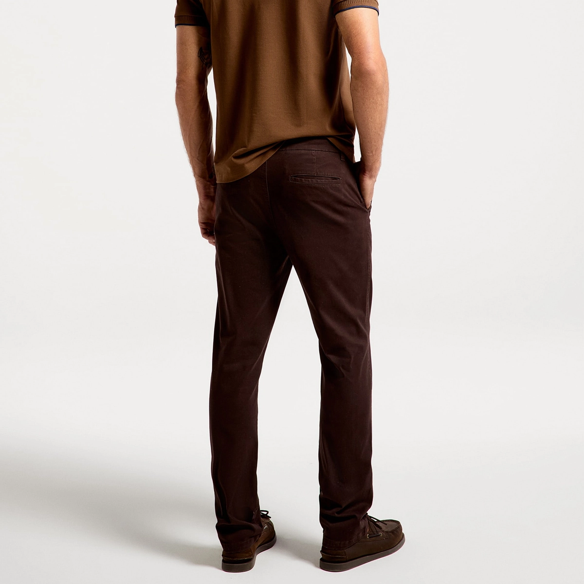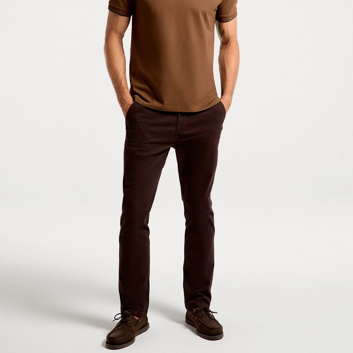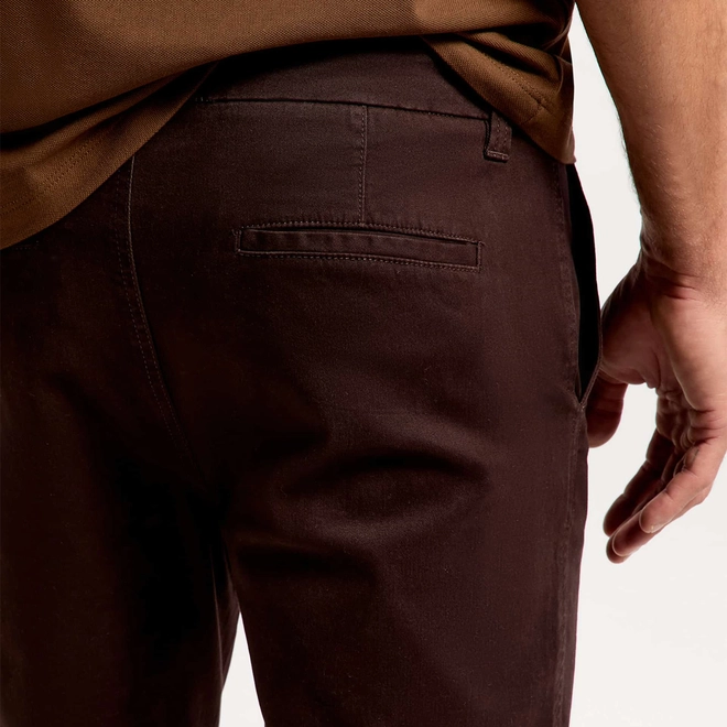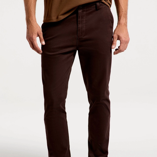 Calça básica masculina chino em sarja, a clássica essencial no guarda-roupa. Elaborada em sarja de algodão com elastano que garante maior flexibilidade e ajuste à peça. Com design semelhante à alfaiataria, oferece elegância nas suas composições.