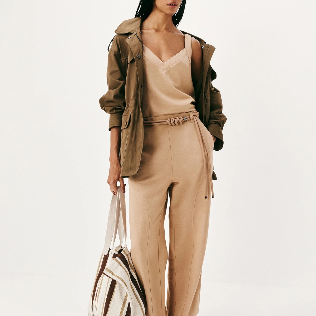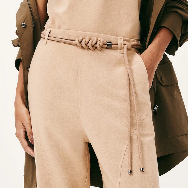 Aposte em um visual moderno e versátil com a Calça Reta Feminina com Cinto H9T9. Com modelagem reta e tecido plano de toque leve, essa peça oferece um caimento impecável e confortável. O cós liso na frente com elástico nas costas garante praticidade ao vestir, enquanto os recortes estratégicos valorizam o design da calça. O cinto trançado incluso adiciona um charme artesanal e eleva o visual com um toque sofisticado.