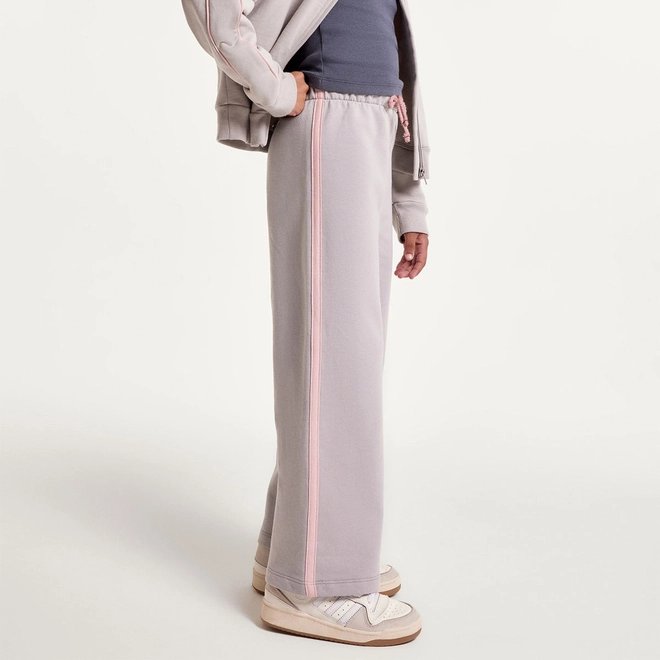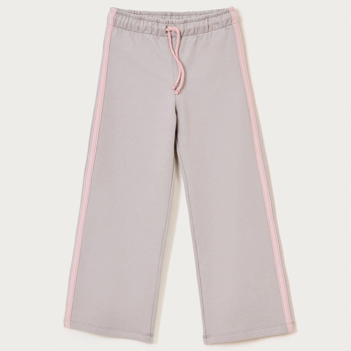 Calça de modelagem wide leg, que proporciona liberdade de movimento. Possui cós de elástico para melhor ajuste e cordel para amarração. Possui detalhe de friso lateral contrastante. Peça em moletom não peluciado.