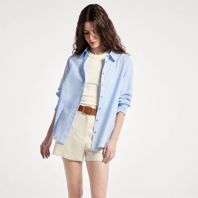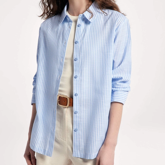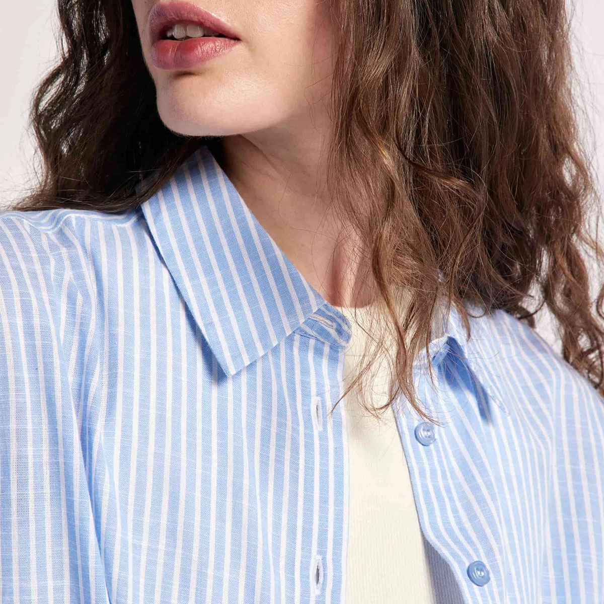 CAMISA FEMININA MANGA LONGA EM TRICOLINE FIO TINTO K6M7