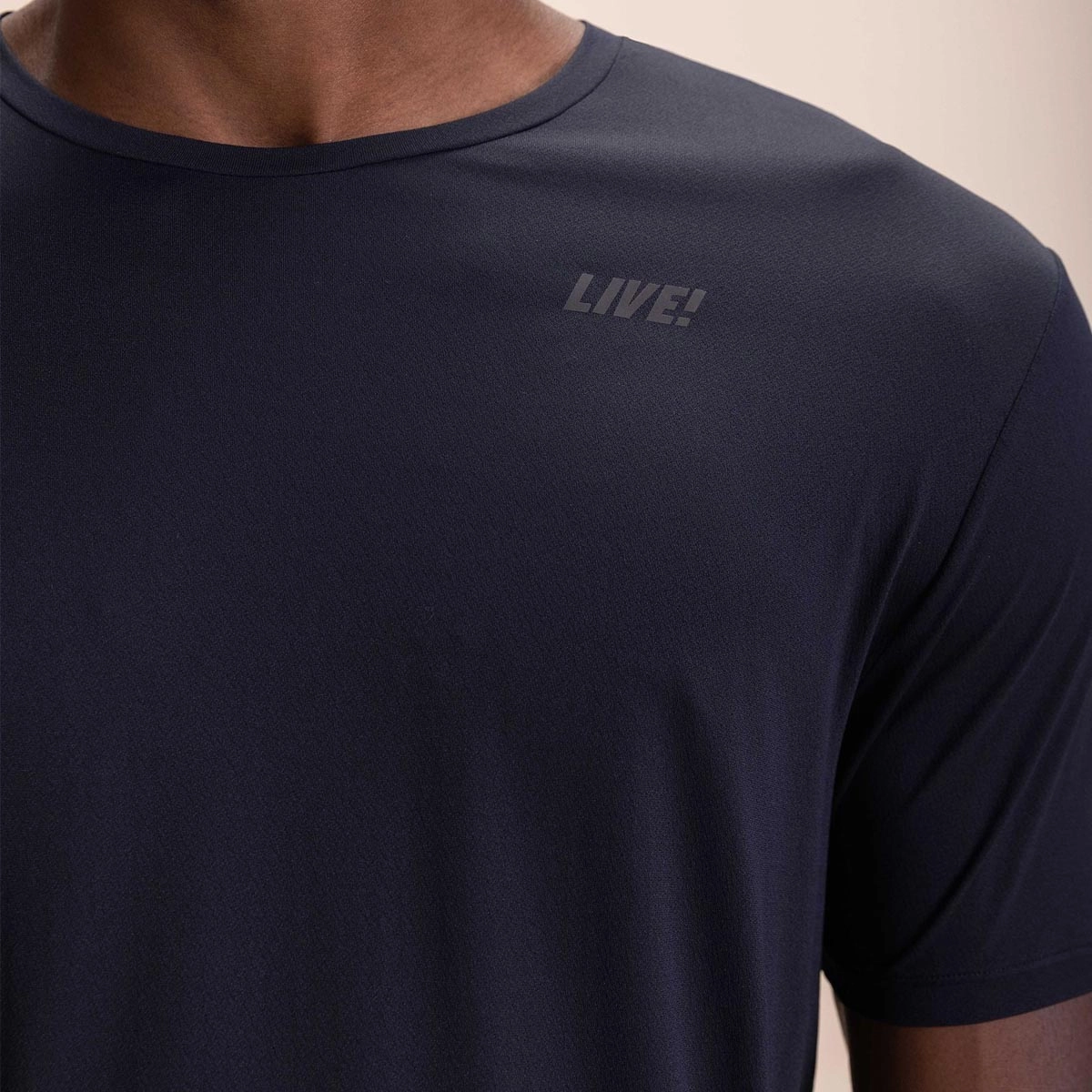 Tecido em superfície creponada e alta respirabilidade.