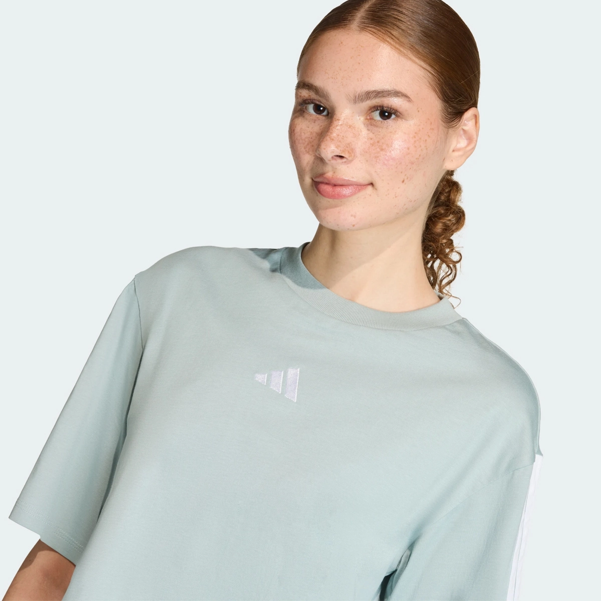 Quando a ocasião exigir conforto, use esta camiseta da adidas. Feita de algodão para uma sensação suave contra a pele, ela tem uma modelagem folgada que lhe dá um toque casual. Combine-o com qualquer coisa, desde shorts de ciclismo até uma saia, e você estará pronto para ir.