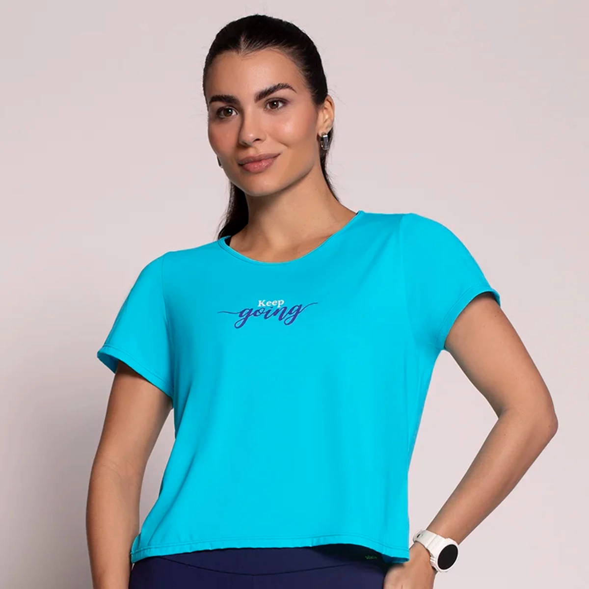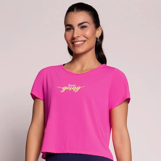 * Com estampa central com a frase, Keep going, (Trad: Continue).