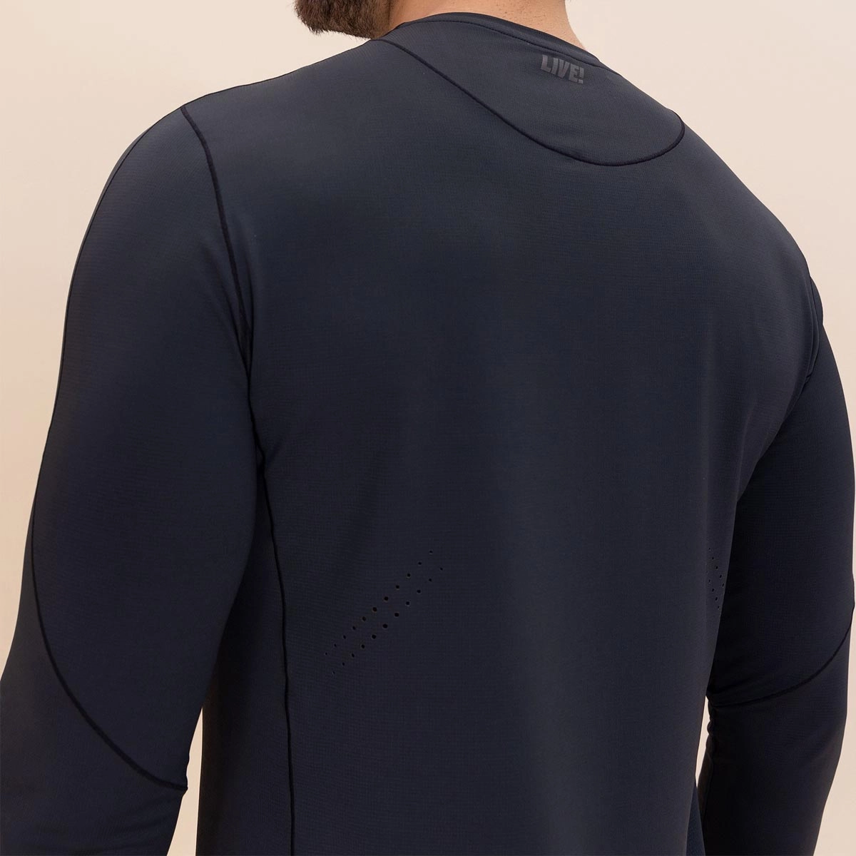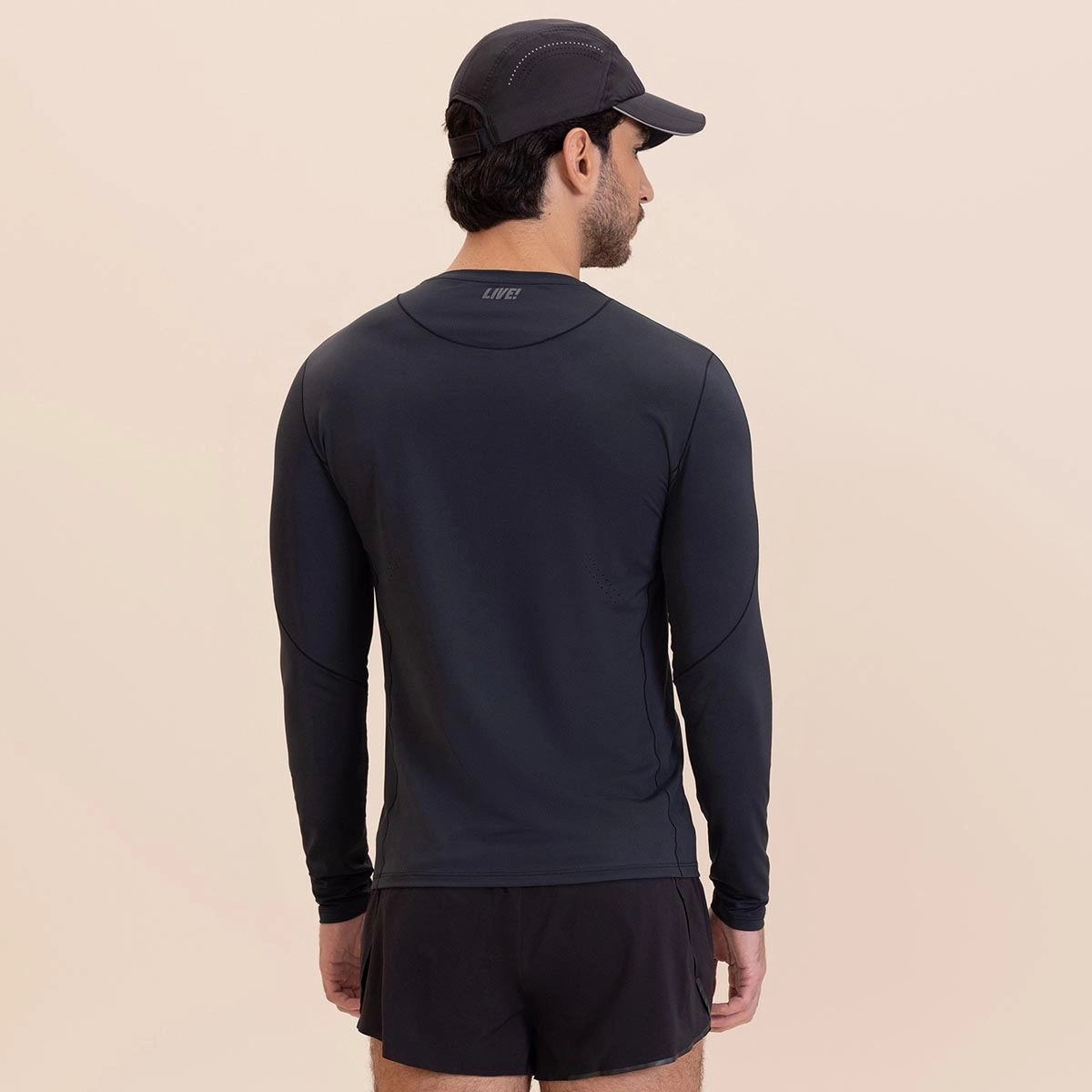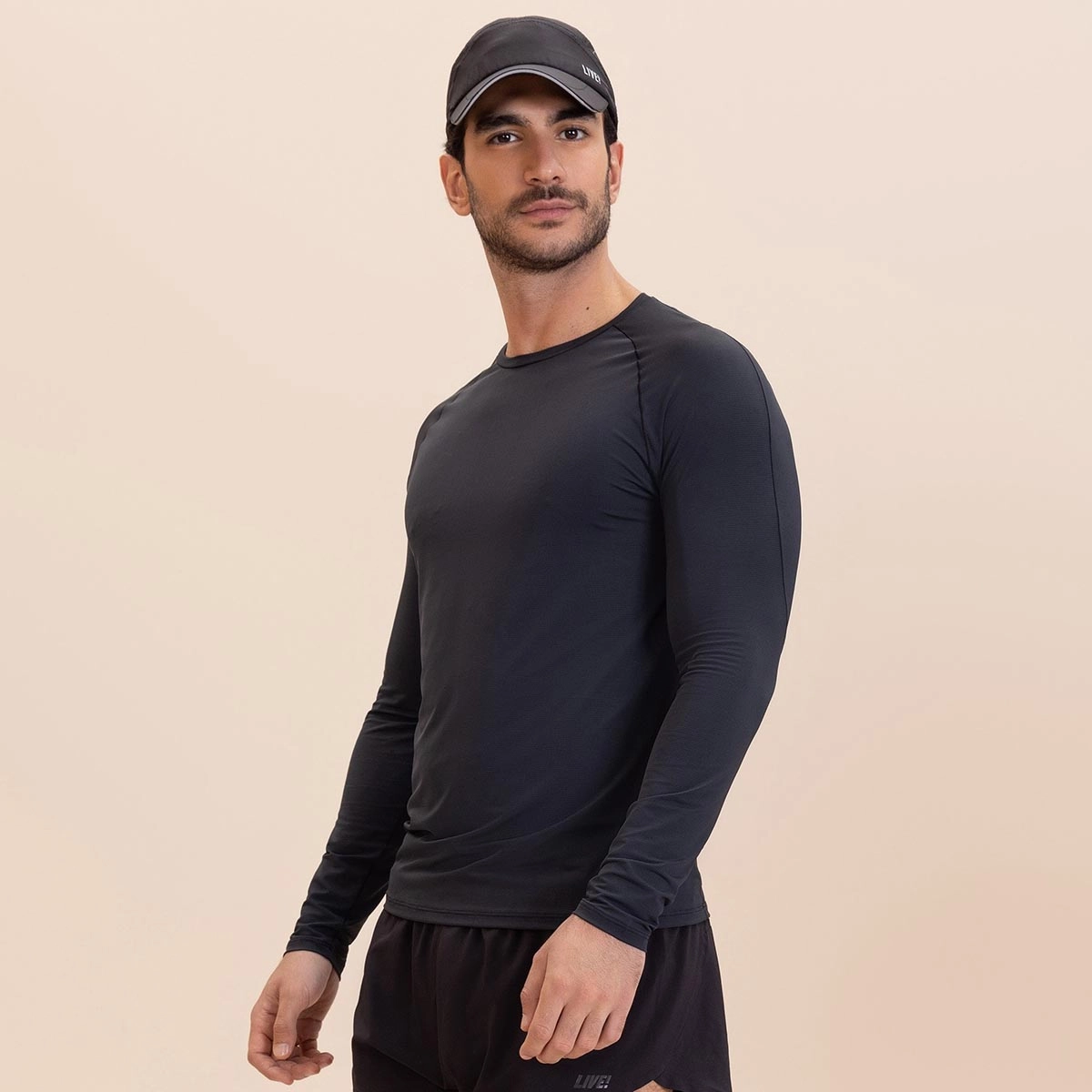 A camiseta de manga longa possui a modelagem fit, levemente ajustada ao corpo, valorizando o shape. Com recortes anatômicos e detalhes em laser nas costas que proporciona respirabilidade à pele.