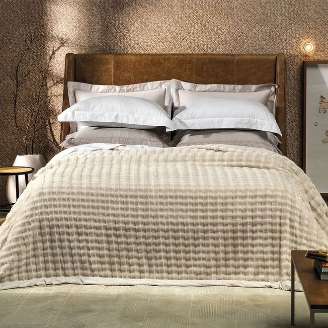 Confeccionado em Plush Flanel Fleece 400g/m², o Desert oferece um toque aveludado, macio e extremamente quentinho, ideal para os dias mais frios. O acabamento com barra de 5cm garante um visual sofisticado e durabilidade, enquanto sua textura única transforma o ambiente em um refúgio acolhedor.