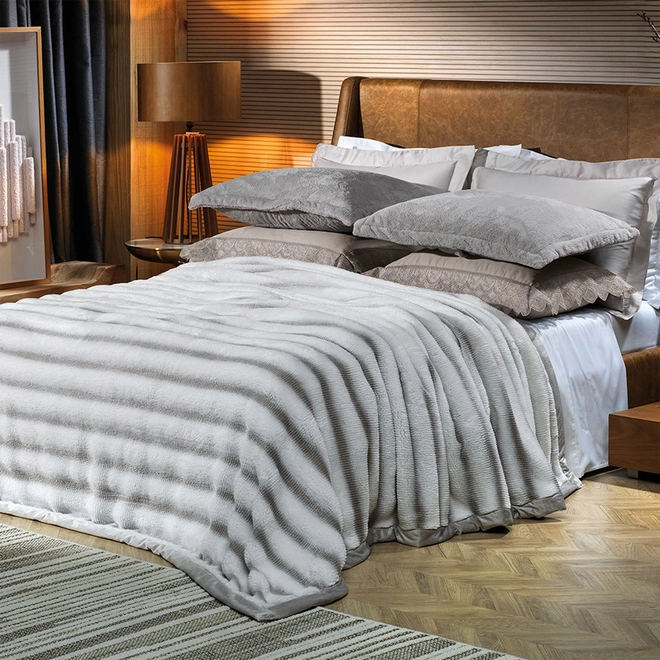 Confeccionado em Plush Flanel Fleece 400g/m², o Cobertor Ocean oferece um toque extremamente macio, ideal para noites frias ou momentos relaxantes no sofá. O acabamento com barra de 5cm adiciona um toque de sofisticação, enquanto as cores disponíveis – cinza e azul – remetem à tranquilidade da natureza.