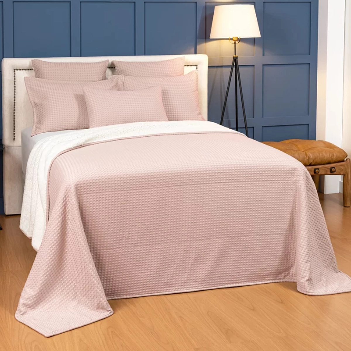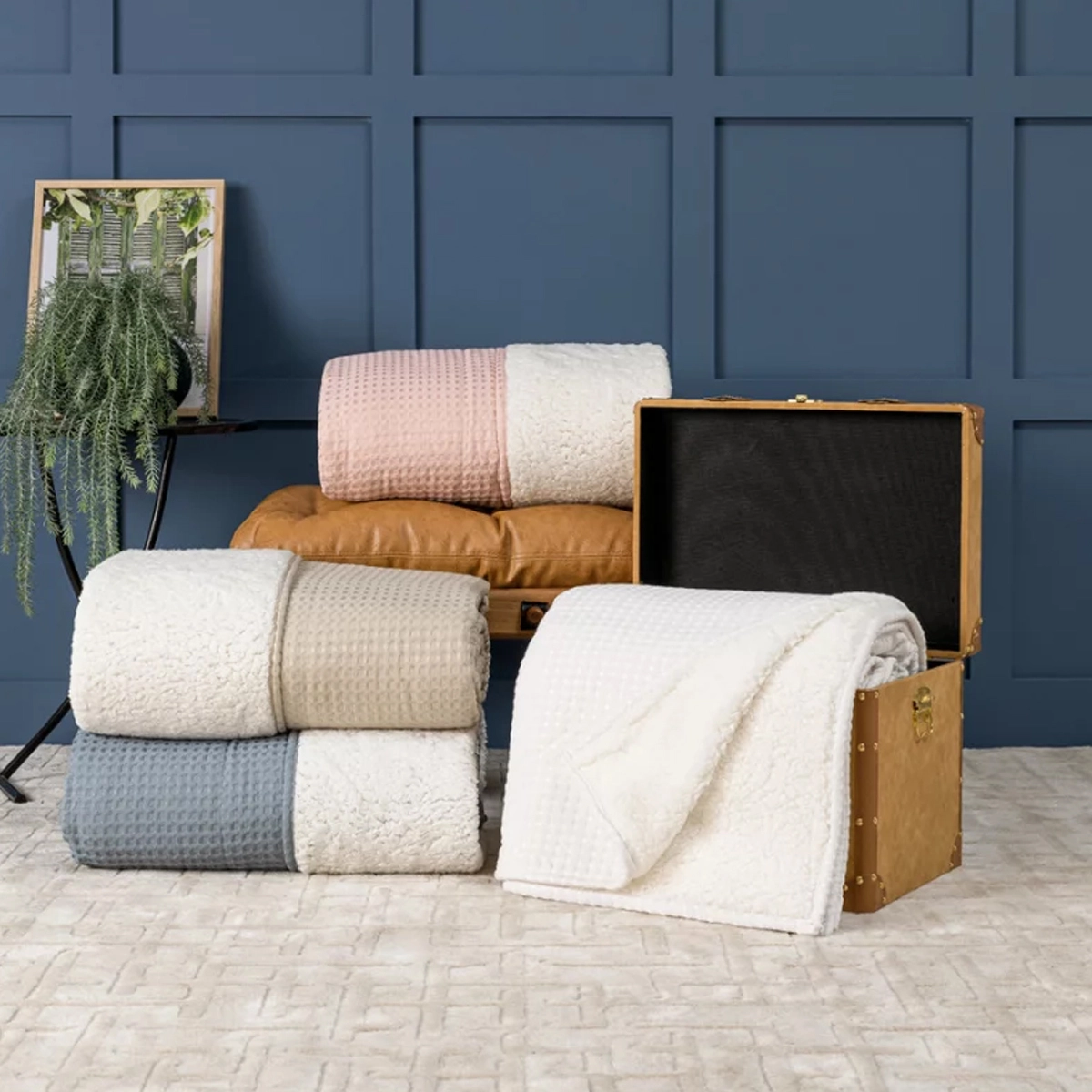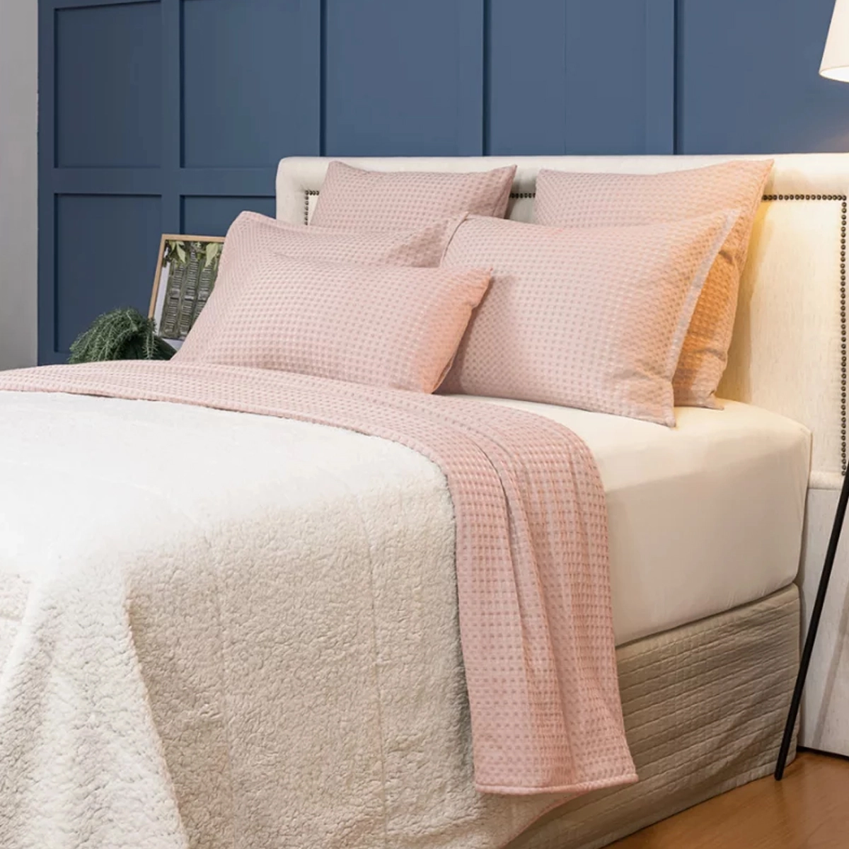 A combinação singular da textura em favos do tecido de piquet com o conforto da sherpa. Um produto aconchegante para a estação e repleto de estilo para sua decor.