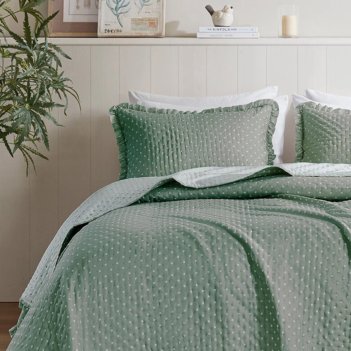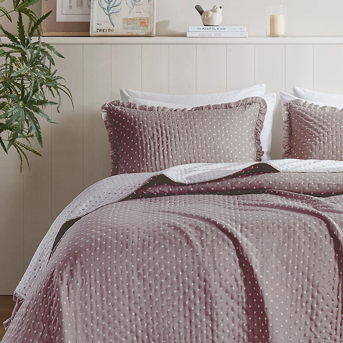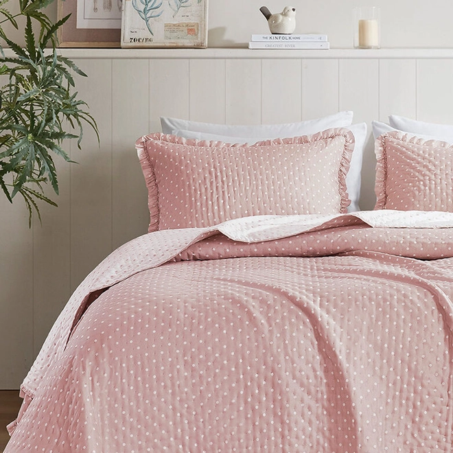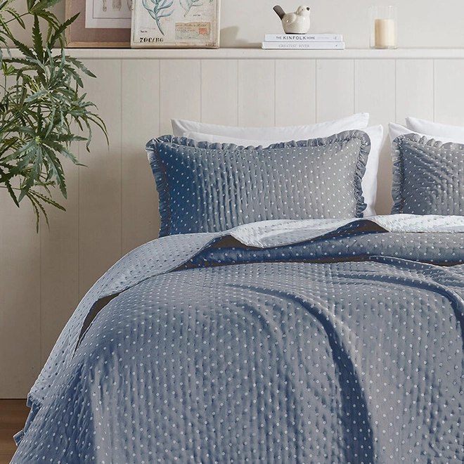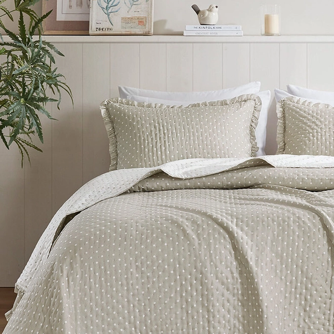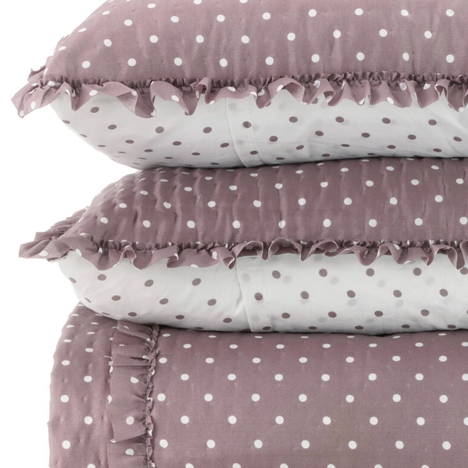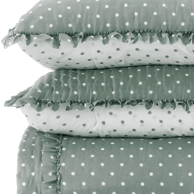 A Colcha Charlotte apresenta uma proposta charmosa e refinada, unindo poá e babados em um visual atemporal para transformar o seu quarto.