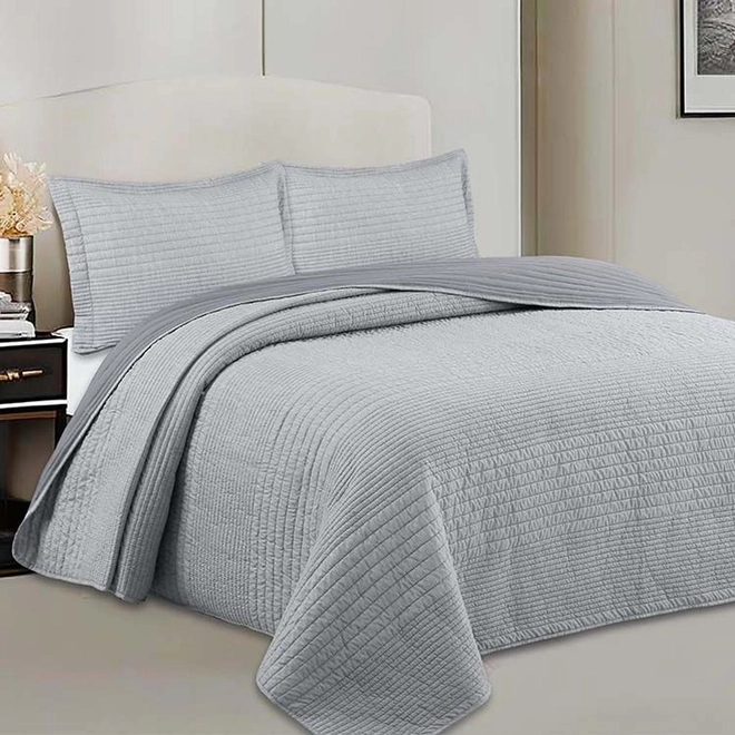 - King – 3 peças: 1 colcha 260 cm x 280 cm + 2 porta-travesseiros 50 cm x 70 cm
