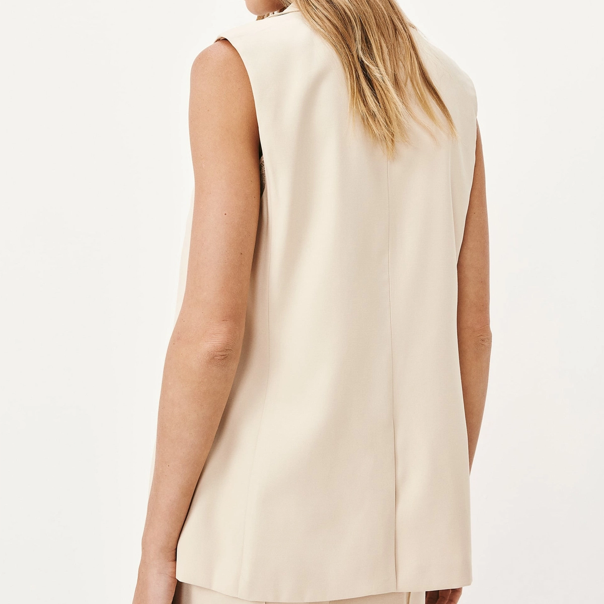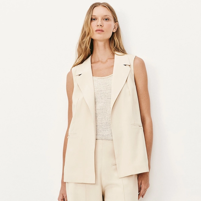 Confeccionado em tecido Peach Touch, que possui um acabamento aveludado e extremamente macio, o colete traz estrutura de alfaiataria com caimento fluido. Ideal para sobrepor camisas, blusas ou usar fechado como blusa principal, ele combina elegância e conforto em qualquer estação.