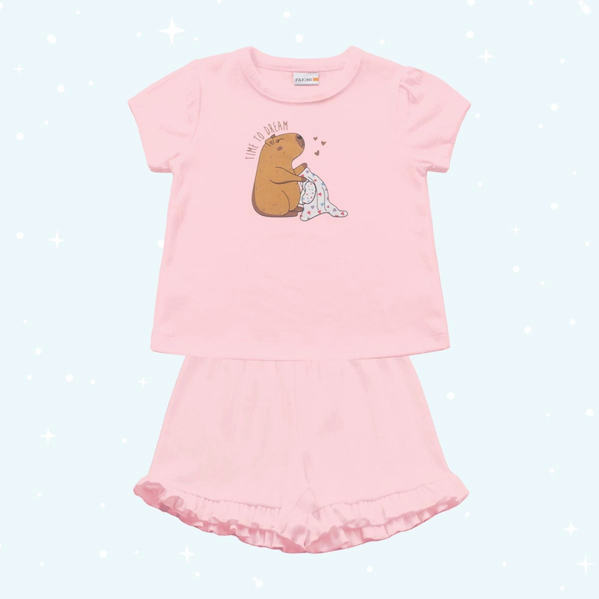 Fakini Conjunto de Pijama Infantil Feminino Blusa e Short – Conforto para Noites Tranquilas
