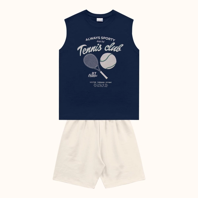 A regata moderna garante frescor e praticidade, enquanto a bermuda em malha confortável completa o look com um toque descontraído e versátil, ideal para diferentes ocasiões.