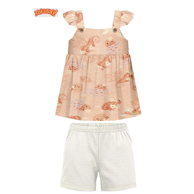 O Conjunto Infantil Alakazoo Ref. A5207 Ocean foi desenvolvido para garantir aos pequenos um look cheio de conforto e diversão. Inspirado no tema Ocean, traz estampa moderna e alegre, perfeita para combinar com os dias ensolarados de verão.