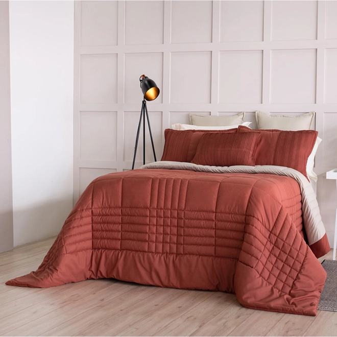 O que é cobre-Leito? O cobre-leito é semelhante ao edredom e à colcha, porém é menos acolchoado que o primeiro e não tão fino como o segundo. Trata-se de uma peça mais decorativa do que para aquecer. Nada impede, porém, de ser usado como cobertor em dias de temperatura amena. Sua principal função, no entanto, é enfeitar e proteger a cama de sujeiras do cotidiano. Por possuir dimensões maiores que o edredom, confere um melhor caimento e beleza para o móvel, podendo ser deixado na cama o dia todo. É possível encontrar cobre-leito em diversas cores e estampas, muitas vezes fazendo parte de jogos de lençóis completos ou acompanhado de capas de travesseiro no mesmo padrão. Há muitas opções de tecido para o cobre-leito. As mais desejadas são as de algodão puro, que fornecem toque macio e frescor. Vale lembrar que, quanto maior a quantidade de fios por centímetro quadrado, mais macio será o produto. Vale investir um pouco mais em um cobre-leito de qualidade e com um número considerável de fios. Em relação à decoração, o cobre-leito deixa a cama ainda mais bonita. Por isso, a dobra do lençol deve ser sempre feita sobre essa peça