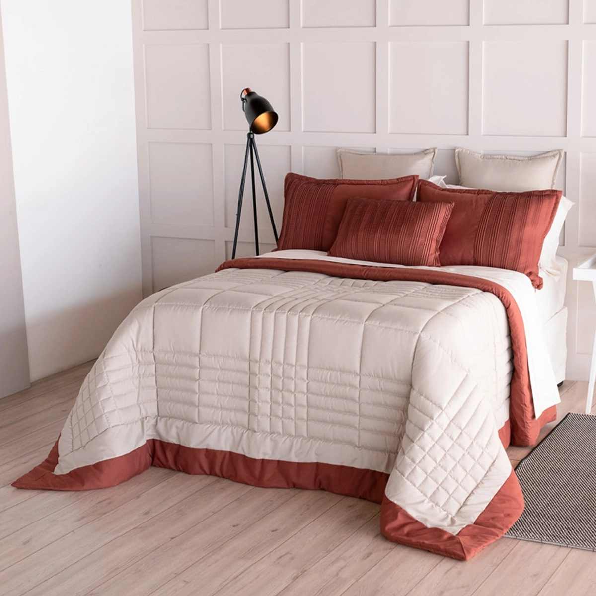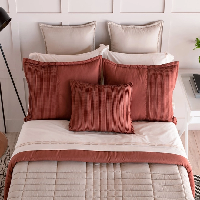Com cobre leito dois em um e um plissado de tirar o fôlego, esse acabamento tão amado por aqui agora em uma proposta mais contemporânea, sofisticada e versátil.
