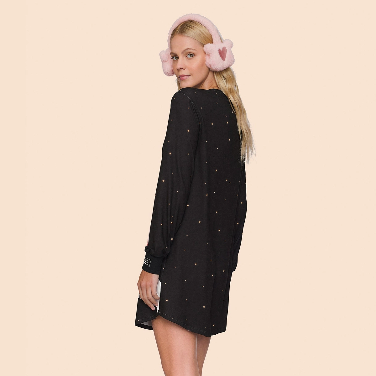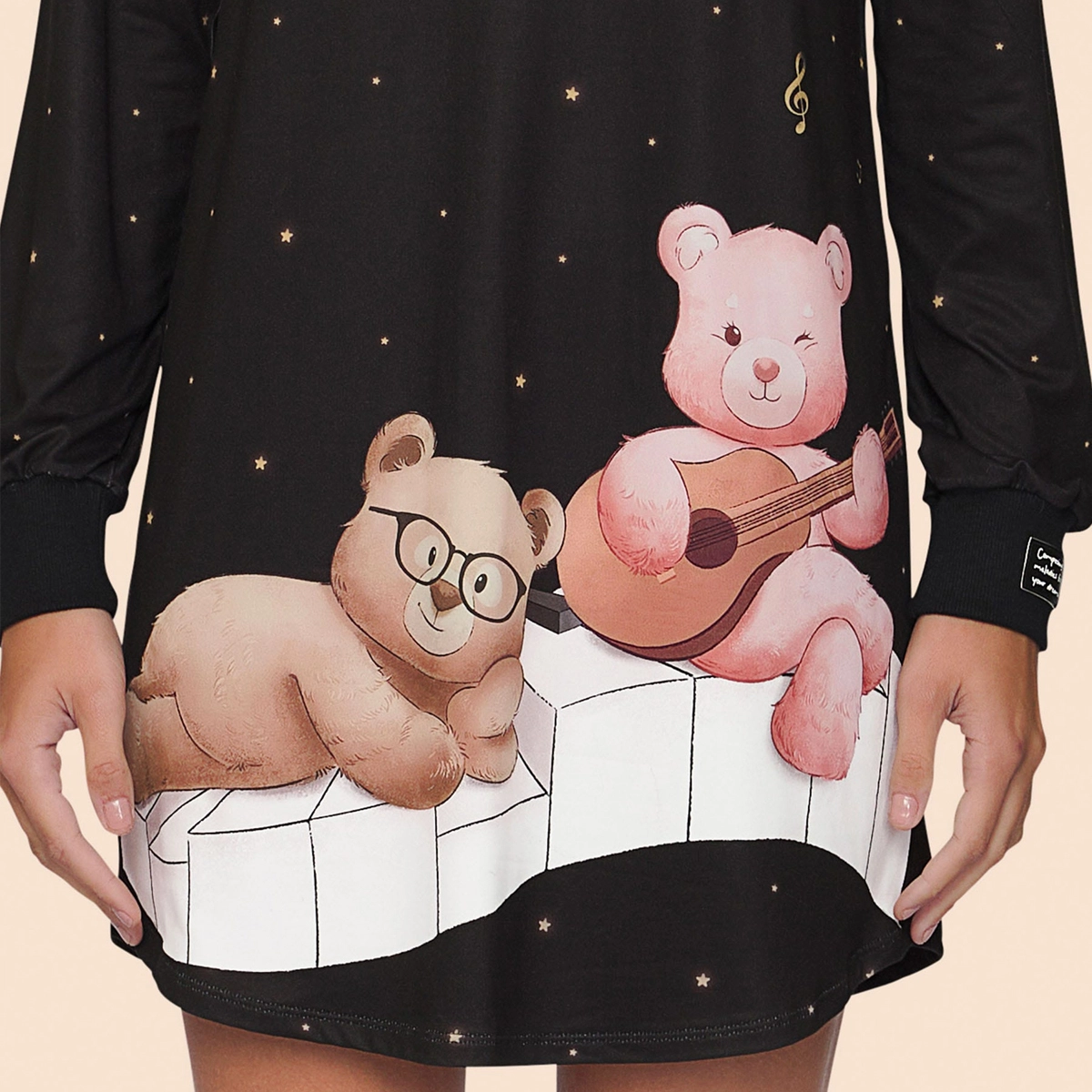 Um coordenado especial para os novos amigos ursos desta coleção: Nina & Steve! Esse dueto querido preenche os pijamas de forma encantadora, compondo melodias para os sonhos de toda a família! Camisola de manga longa, confeccionado em sublime touch, malha com toque pele de pêssego. Possui acabamentos na gola e punhos com tecido de ribana.