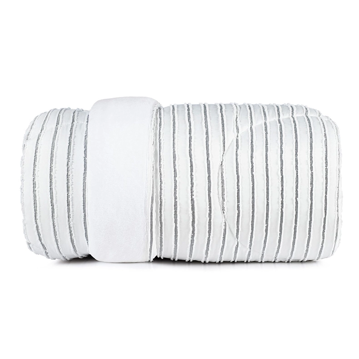 O lado superior apresenta poliéster com relevo em listras (135g/m²), que adiciona textura e estilo ao ambiente. Já o lado inferior, em PV Fleece, oferece toque macio e sensação aconchegante, ideal para noites de descanso profundo. O enchimento em poliéster thermobonder (150g/m²) proporciona um isolamento térmico eficaz, mantendo o corpo aquecido mesmo em temperaturas mais baixas.