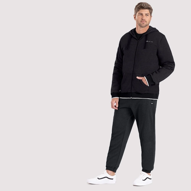 Não existe tendência melhor do que curtir essa jaqueta com capuz na maior vibe FICO de ser. Feita em Moletom Felpado, a peça é muito confortável, principalmente pelo forro em manta térmica que é perfeito para os dias mais frios. Os detalhes em retilínea trazem um quê esportivo para um visual irado com calça e tênis branco.