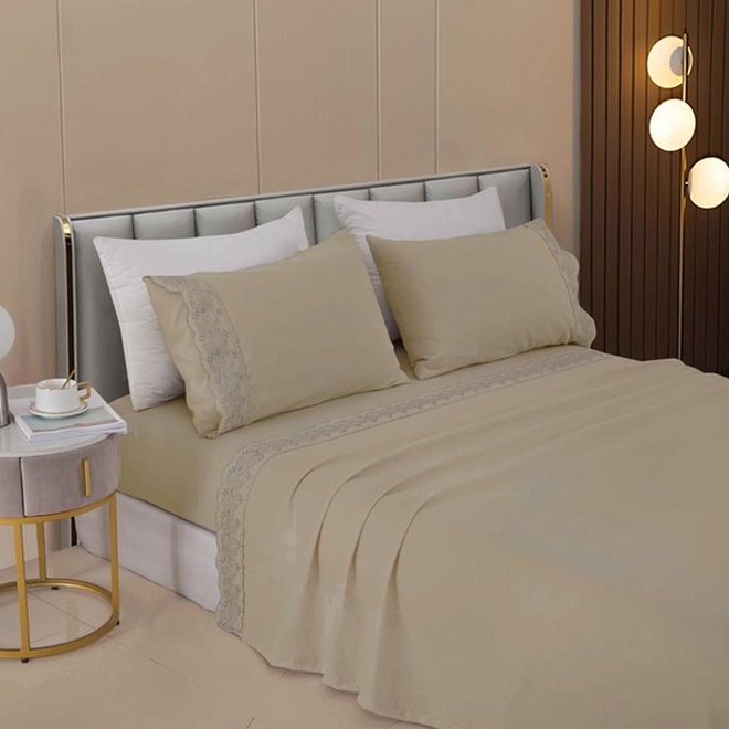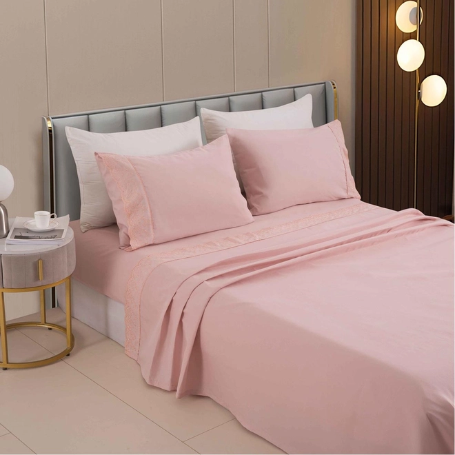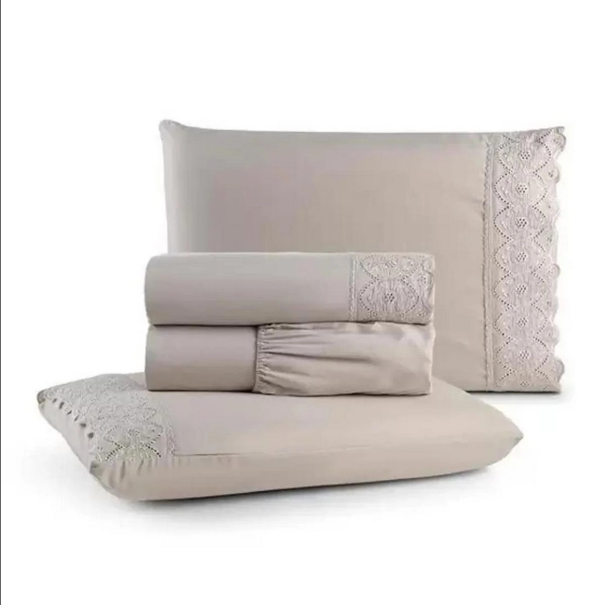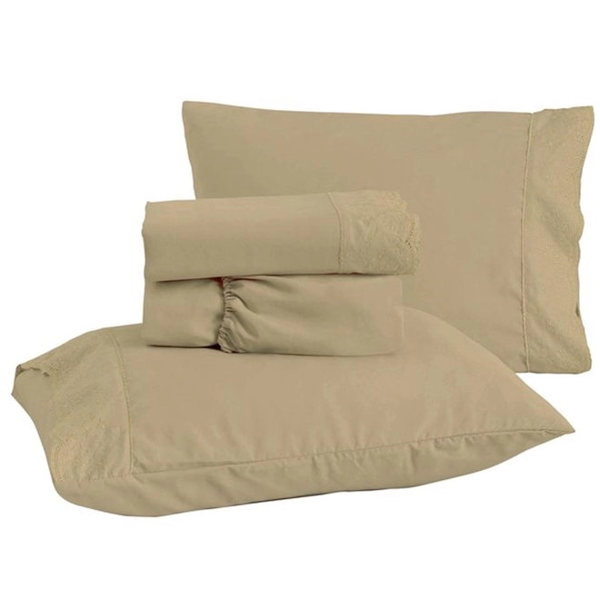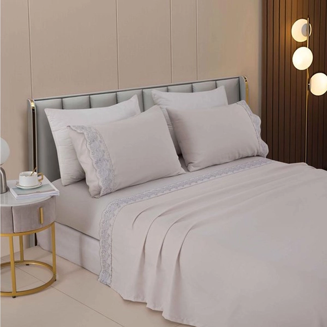 Confeccionado em Percal 300 Fios, tem um diferencial que é o bordado inglês nas fronhas e no lençol de cima, o produto se destaca em seu incrível acabamento, para quem gosta de uma cama mais luxuosa. Sem contar o toque do tecido que é macio e confortável.