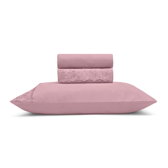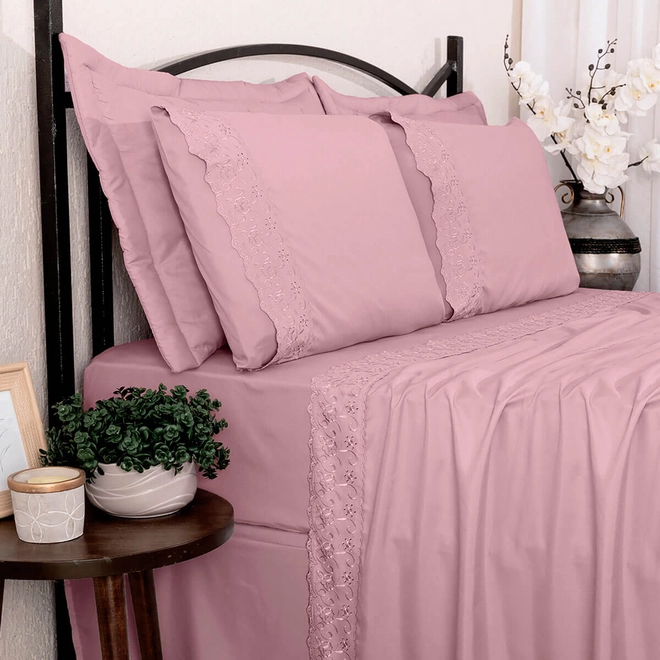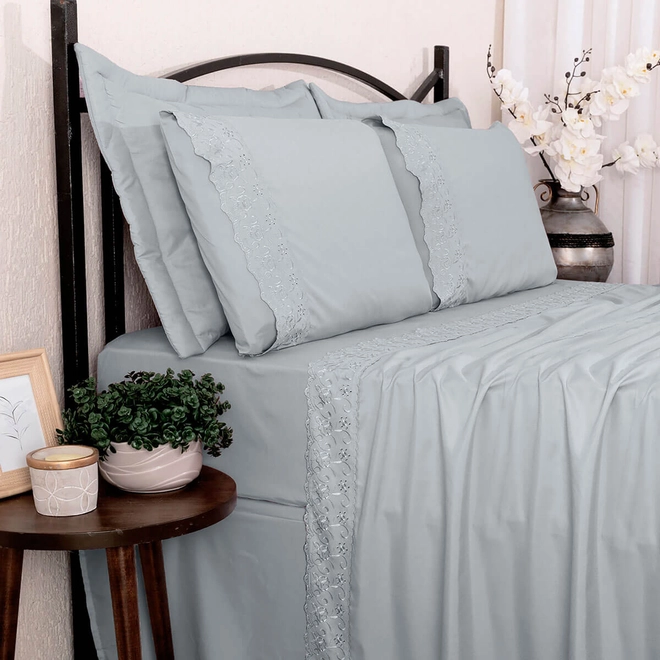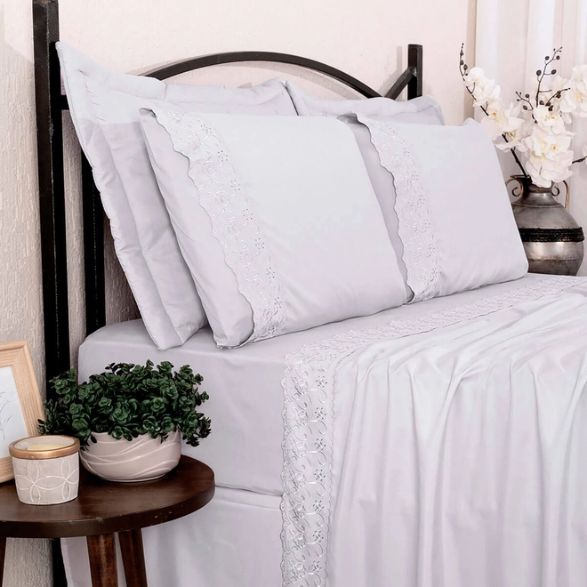 JOGO CAMA MICROFIBRA SONATA BORDADO INGLES RENDA ALICE