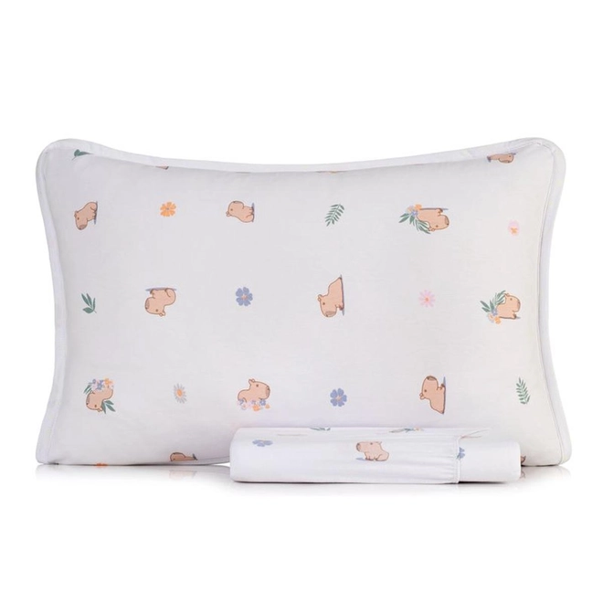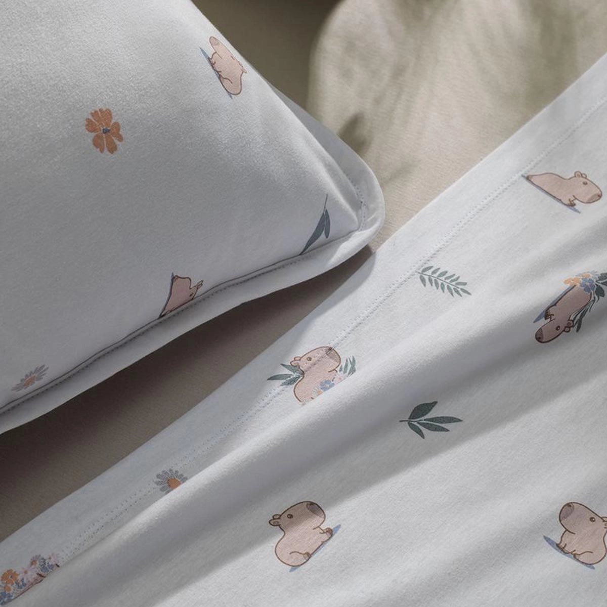 A estampa Capi traz a doçura da simpática capivara para dentro do quarto! Com ilustrações delicadas do animal em diferentes poses, acompanhadas de flores e folhagens, ela cria um cenário lúdico e cheio de alegria. A paleta em tons suaves de rosa, bege e cinza transmite leveza e tranquilidade, deixando o ambiente ainda mais aconchegante. Além de encantadora, é perfeita para garantir noites tranquilas e cheias de conforto. Disponível em jogos de cama, edredons, fronhas e jogos de colcha, é a escolha ideal para transformar o quarto em um espaço acolhedor e cheio de charme.