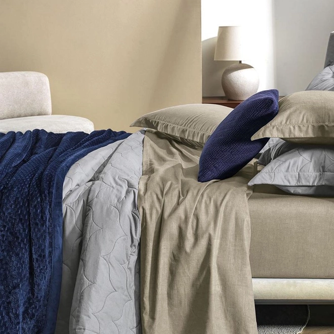 Tesso vem do latim texere, que significa “tecer”, e traduz o entrelaçamento que inspira este jogo de cama. Une a beleza que remete a tramas rústicas e naturais ao conforto do fio penteado, com detalhes refinados e delicadeza em cada toque. O diferencial fica por conta do acabamento em ponto ajour nas fronhas, que adiciona charme artesanal. Disponível em tons neutros e elegantes — marinho, cinza e bege — é ideal para composições minimalistas e contemporâneas.