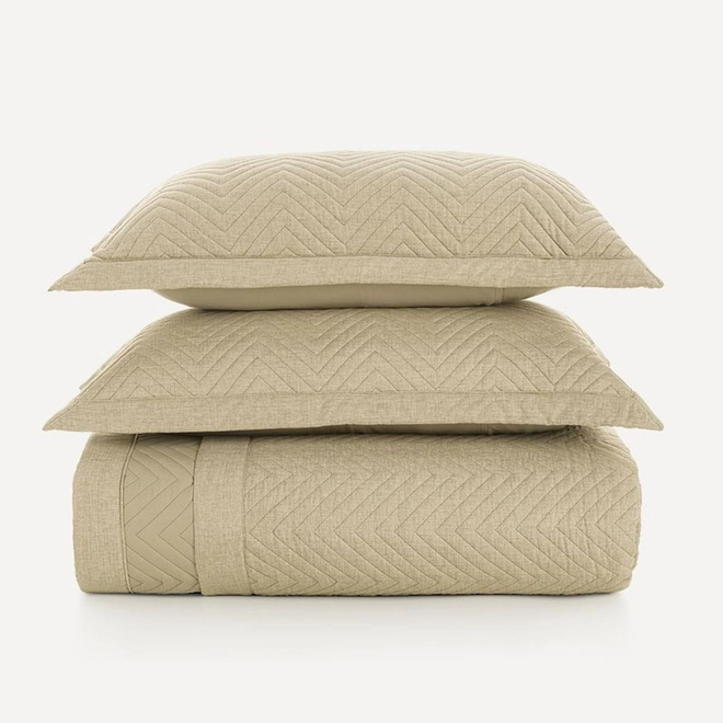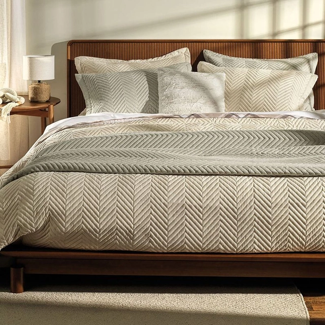 A colcha Arturo é ideal para ambientes sóbrios e sofisticados. Seu matelassado geométrico discreto, combinado ao tecido com efeito mesclado, garante personalidade sem excessos. Nas cores giz, um tom de bege acinzentado, e concreto, um cinza mais escuro e fechado, ela se destaca pela elegância sutil. Versátil, compõe camas minimalistas com charme e modernidade, oferecendo equilíbrio visual e um toque acolhedor ao ambiente. Uma escolha refinada para quem valoriza estética e conforto