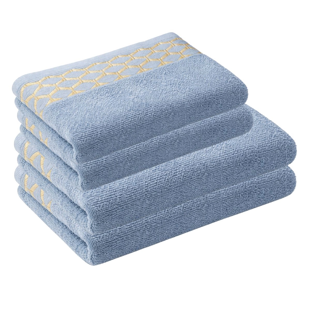 JOGO DE TOALHA 4 PEÇAS TOALHA JAQUES JACQUARD AZUL ARTICO
