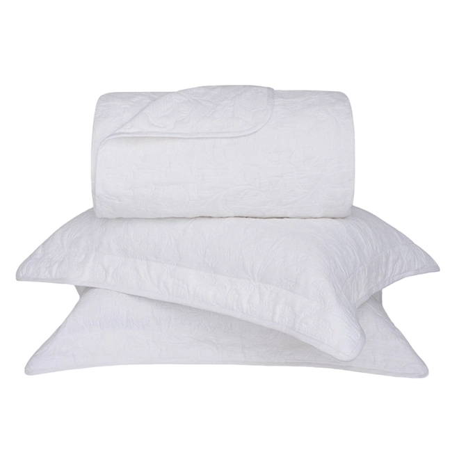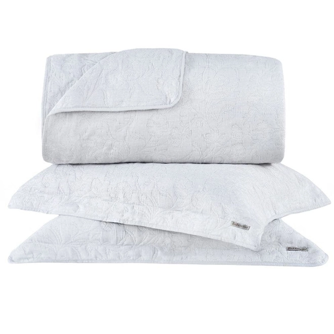 O Kit Colcha Cobre Leito Buddemeyer Intense Hanna é a escolha perfeita para quem deseja transformar o quarto em um ambiente acolhedor, elegante e com um toque de serenidade. Com design clássico e ao mesmo tempo moderno, a colcha exibe um delicado trabalho em jacquard com florais e folhagens em relevo que criam uma textura suave e sofisticada. Seus tons suaves intensifica o efeito de leveza e transmite uma sensação de frescor e tranquilidade, ideal para compor decorações clean, românticas ou minimalistas. O grande diferencial deste kit está no seu toque macio e no caimento impecável, que valoriza a cama e torna qualquer rotina mais agradável.