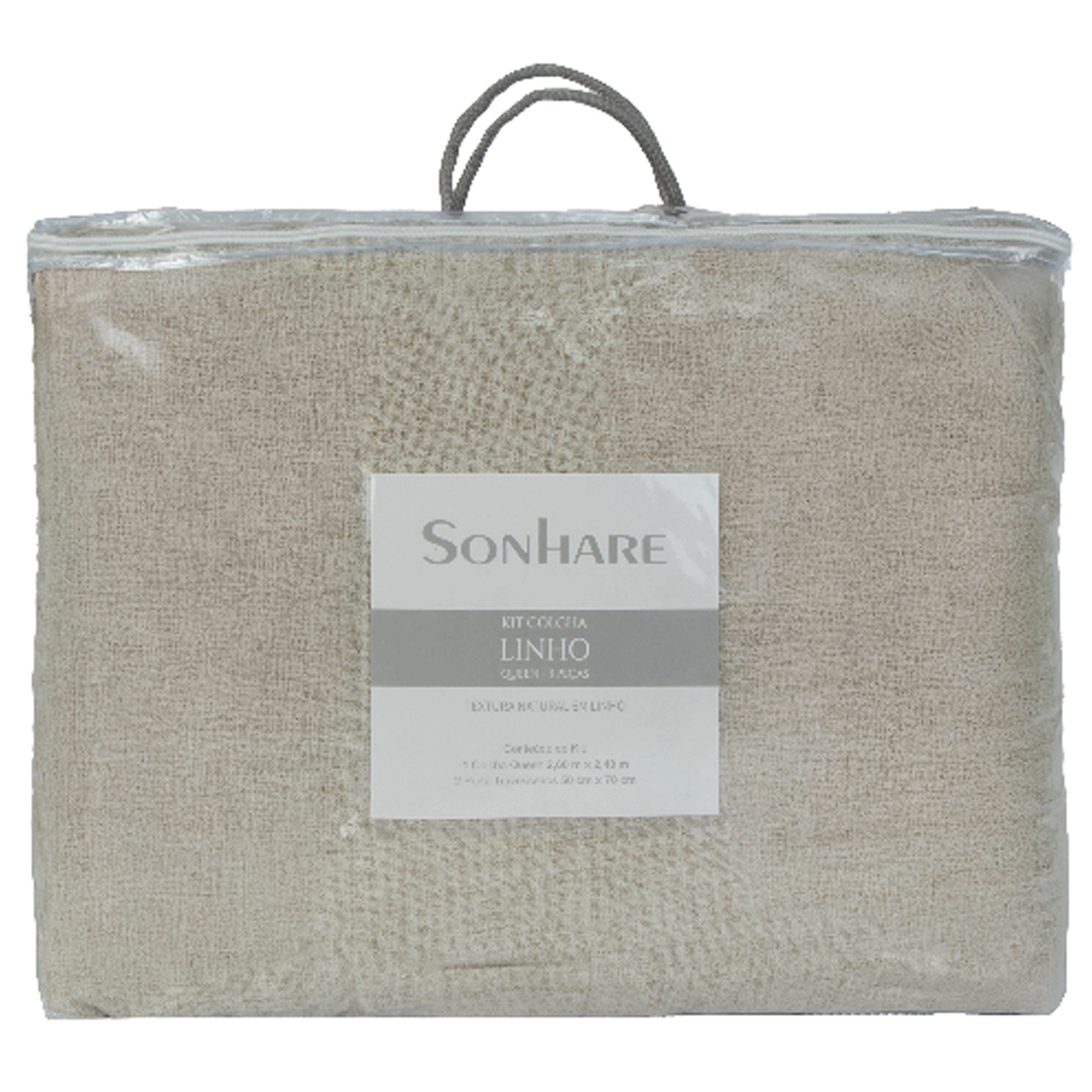 Invista em conforto e estilo com o Kit Colcha / Cobre Leito Sonhare Linho Sultan e transforme suas noites em momentos ainda mais especiais.