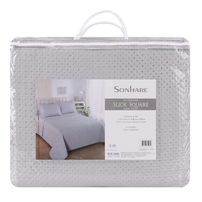 O Kit Colcha Sonhare Slick Square Sultan é perfeito para quem deseja unir estilo, conforto e qualidade, transformando o quarto em um espaço ainda mais agradável e sofisticado.