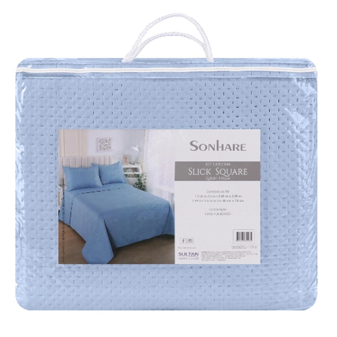O Kit Colcha Sonhare Slick Square Sultan foi criado para oferecer sofisticação, praticidade e aconchego ao quarto. Com design contemporâneo e textura em formato square, o conjunto traz um visual moderno que valoriza a decoração e deixa a cama ainda mais elegante.