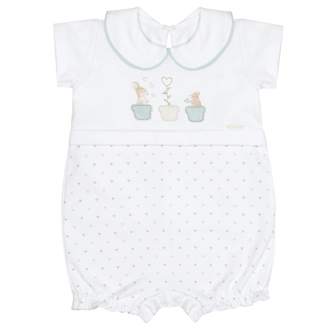 O Macacão Curto Sonho Mágico Heart é puro charme e conforto para os dias mais quentes! Confeccionado em suedeine 100% algodão, oferece um toque macio, leve e respirável, ideal para cuidar da pele delicada do bebê com suavidade.