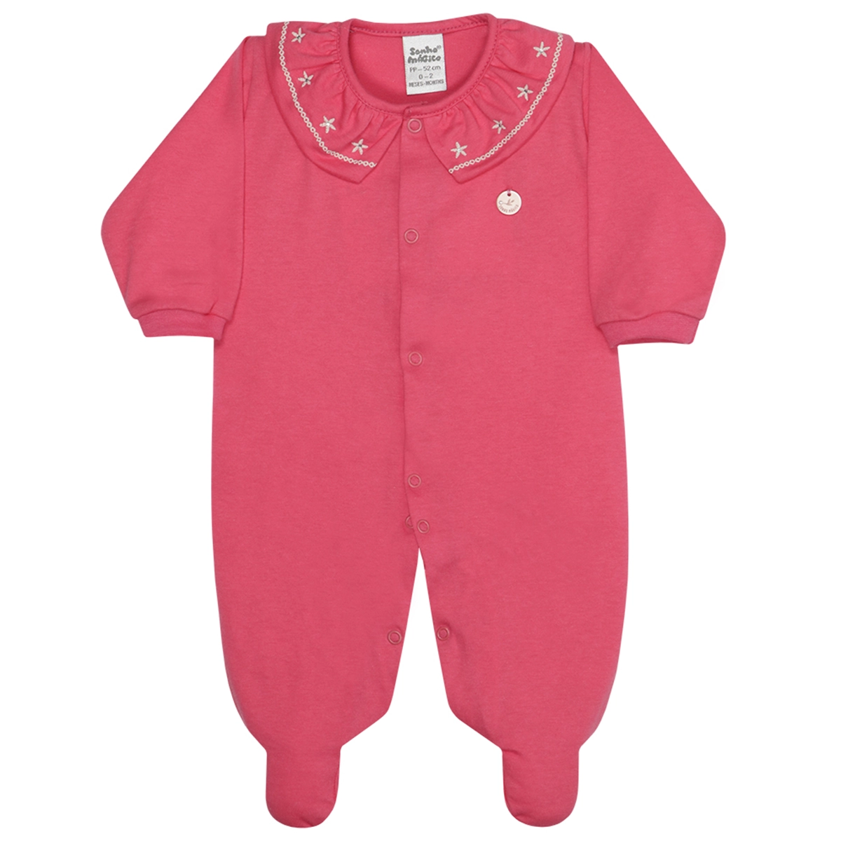 Com detalhes encantadores e acabamento delicado, o modelo Graciosa traduz o charme e o cuidado característicos da marca Sonho Mágico. A abertura com botões de pressão facilita o vestir e a troca, garantindo mais praticidade para os papais e conforto para o bebê.