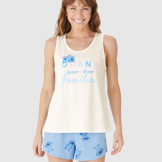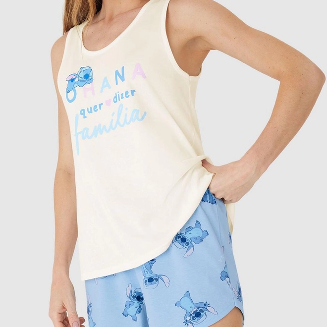 O Pijama Curto Feminino Estampa Ohana Stitch Disney® em Algodão é puro charme e conforto para suas noites. Com regata, shorts modelagem runner e estampa exclusiva Stitch, traz leveza e diversão para relaxar com estilo.