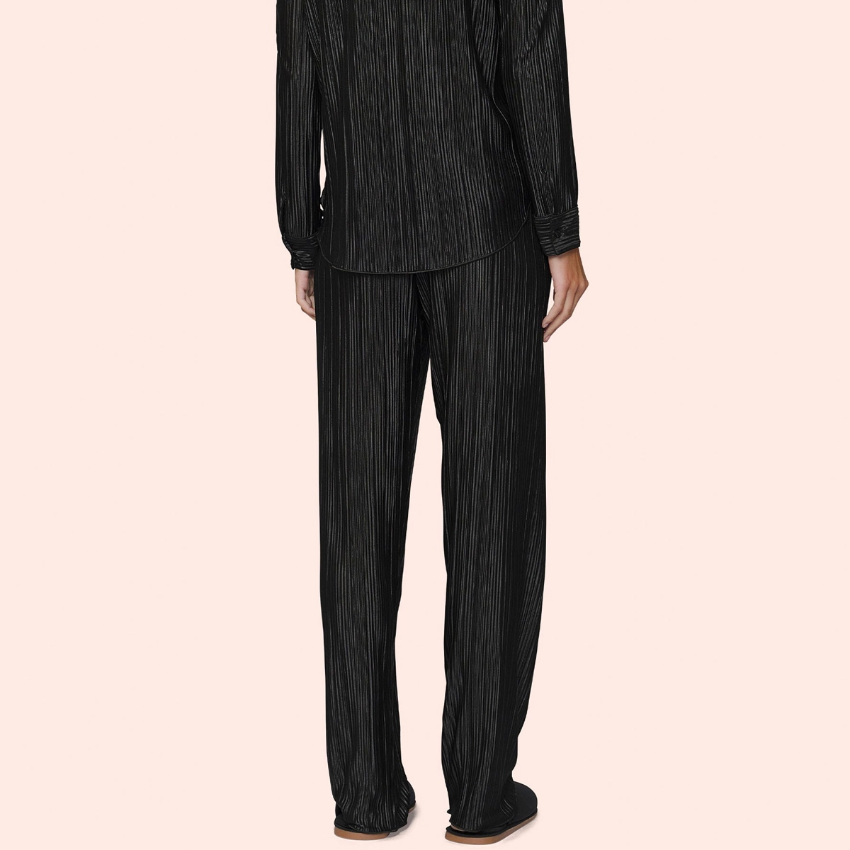 Pijama Feminino Aberto em Tecido Plissado com Brilho Suave