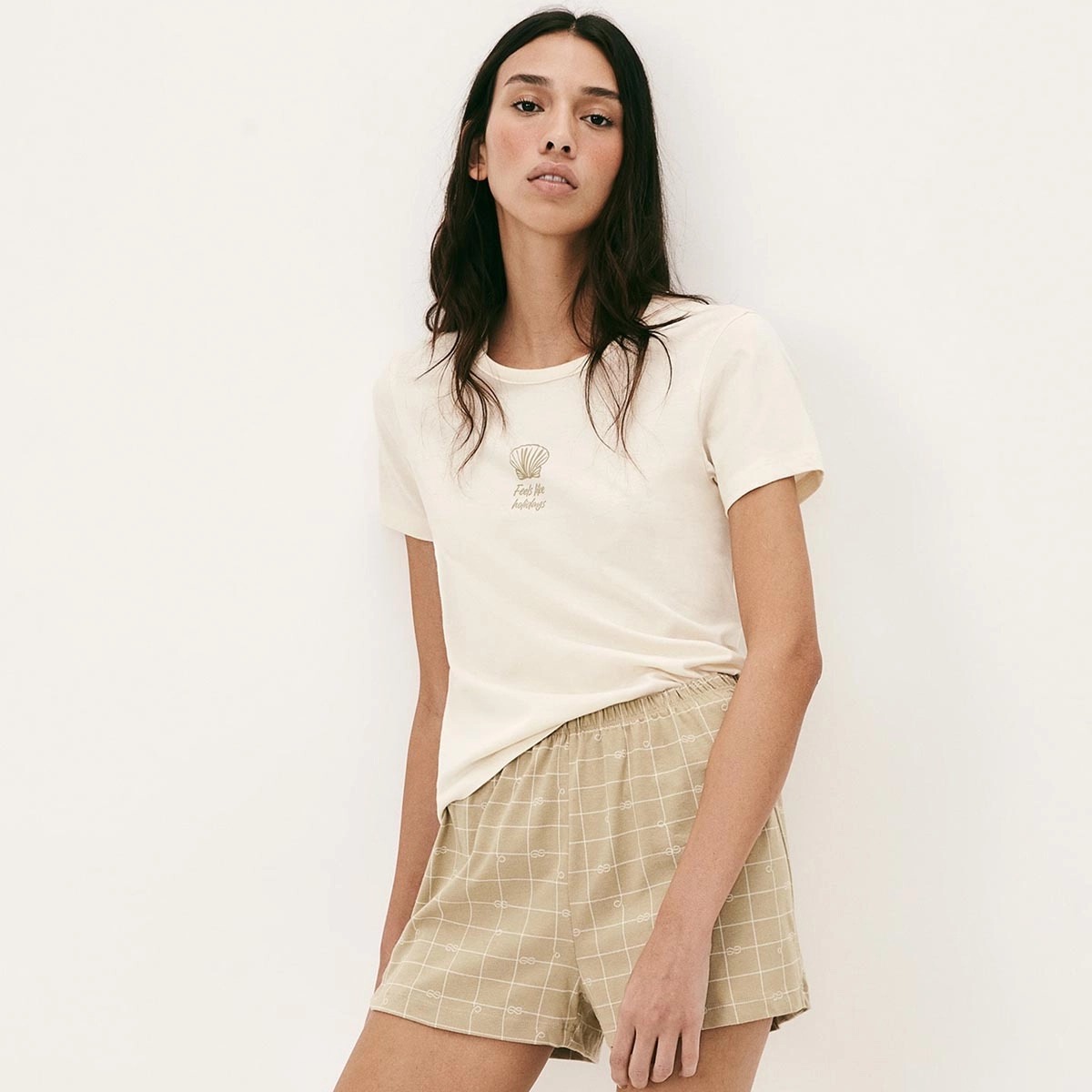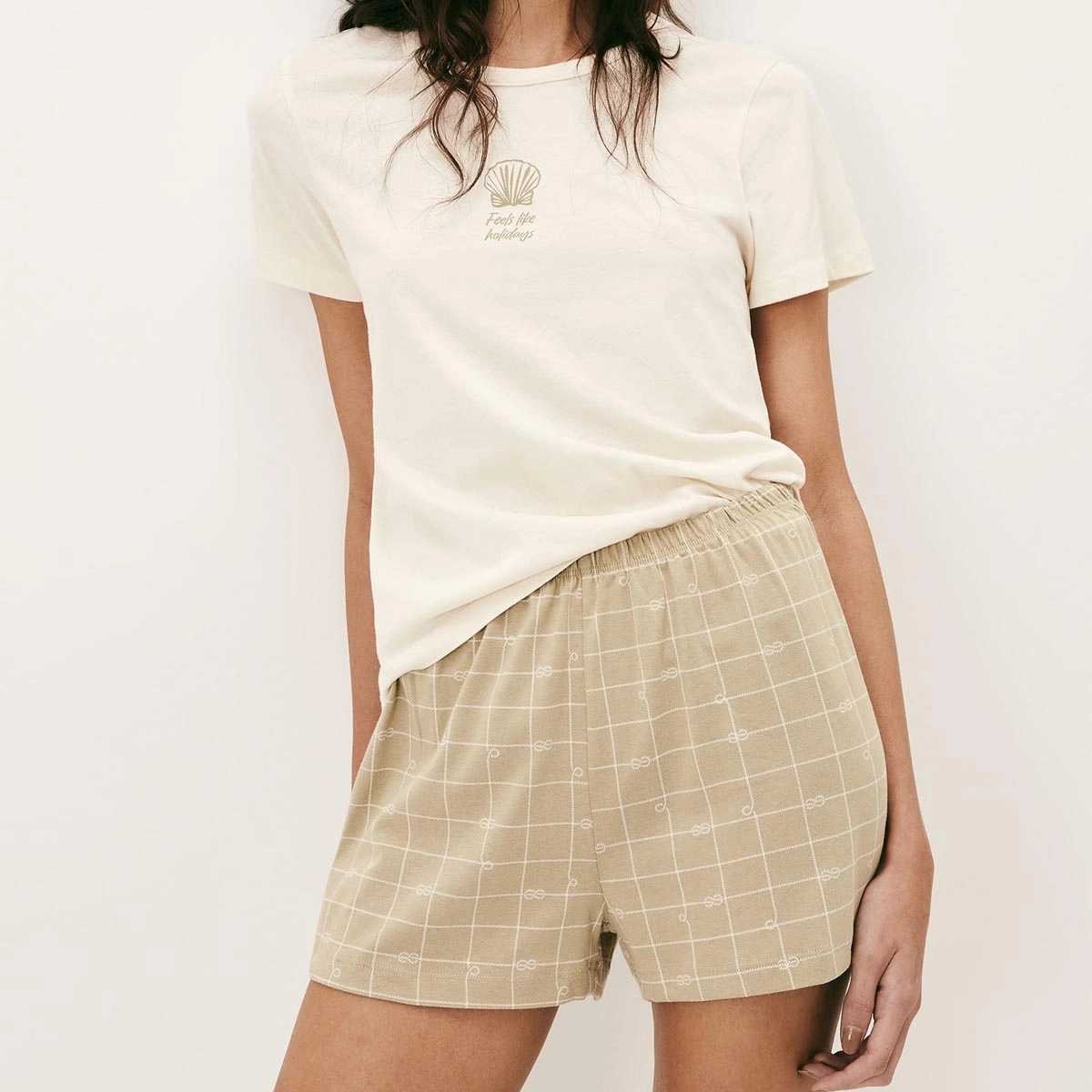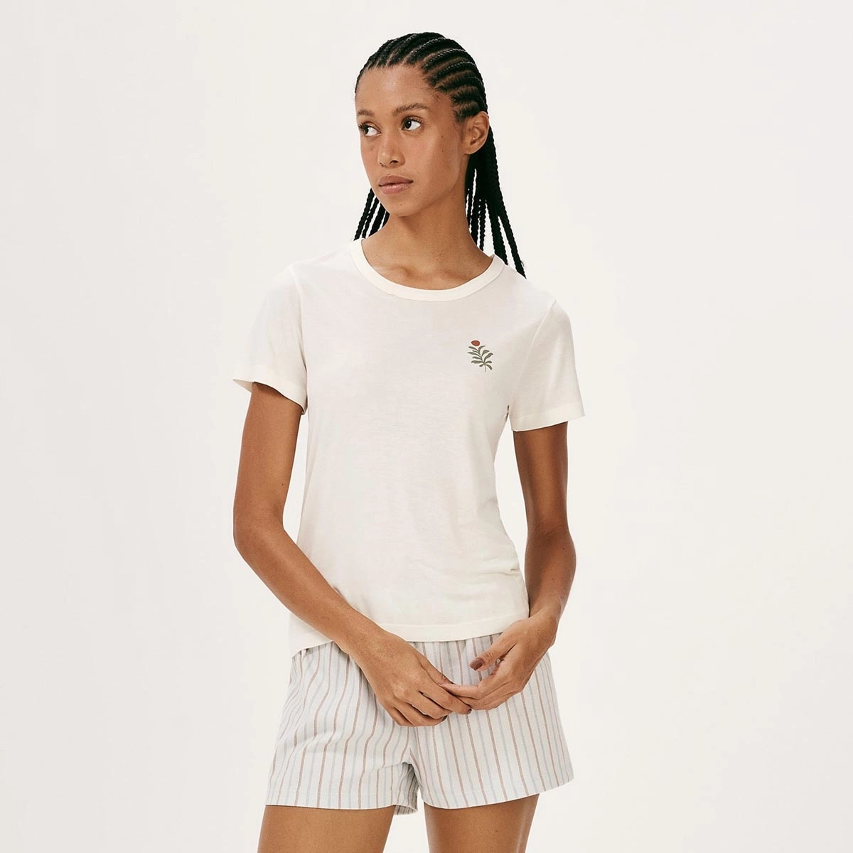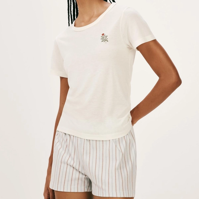 Pijama Curto Feminino Decote Redondo 7BYQ