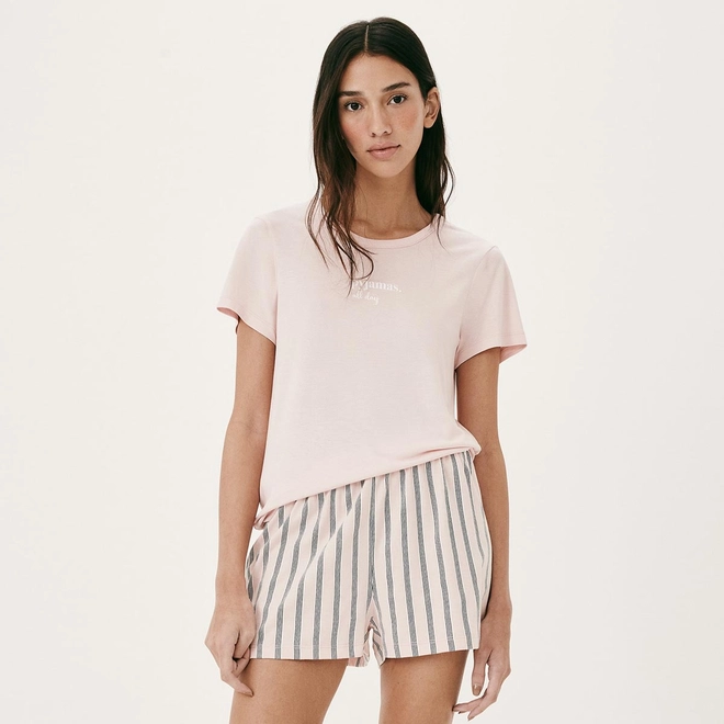 Pijama curto feminino estampado, conforto e praticidade para seus momentos de descanso. Pijama elaborado em malha de algodão, composto por blusa manga curta com estampa frontal, e shorts curto com estampa rotativa.