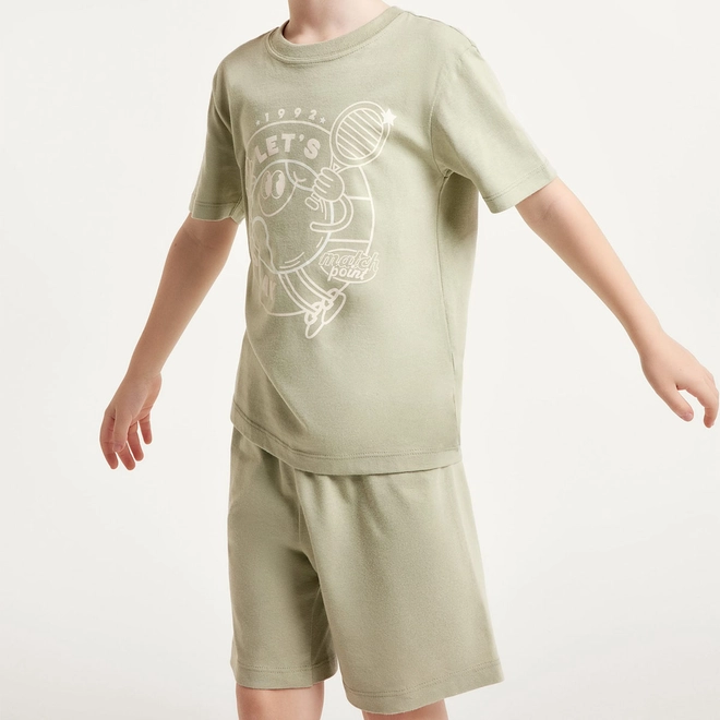 Os pijamas deixaram de ser apenas uma versão padrão, agora trazem versões mais interativas, com muito mais estilo e modernidade. Esse conjunto de pijama para menino em tamanho curto, é confeccionado em malha 100% algodão oferecendo maciez e conforto. Sua modelagem é regular, soltinha ao corpo com a blusa em manga curta, decote redondo e estampa localizada na frente, super moderna. Composto pelo shorts em cós com elástico não contendo estampa, nem bolsos. Invista, além de ser moderno e fresquinho, proporciona praticidade ao vestir e brilha no escuro.