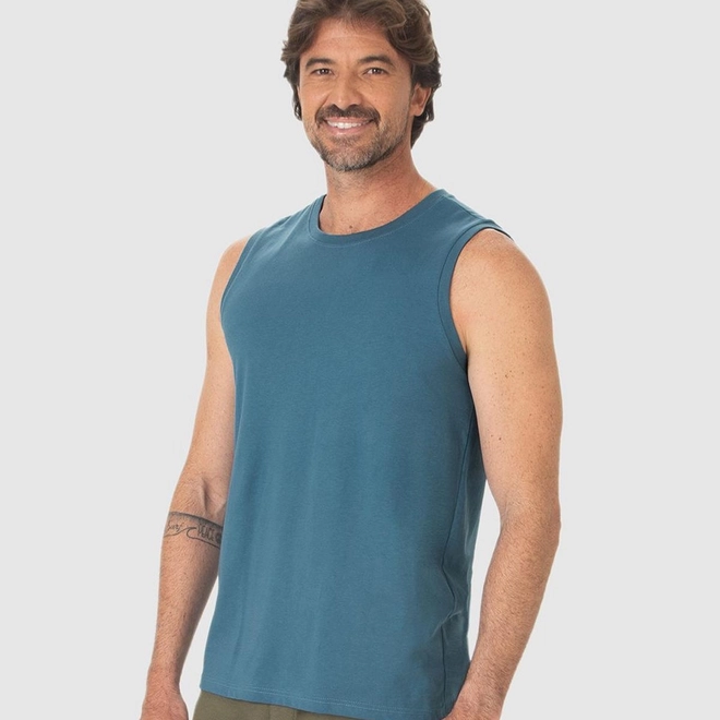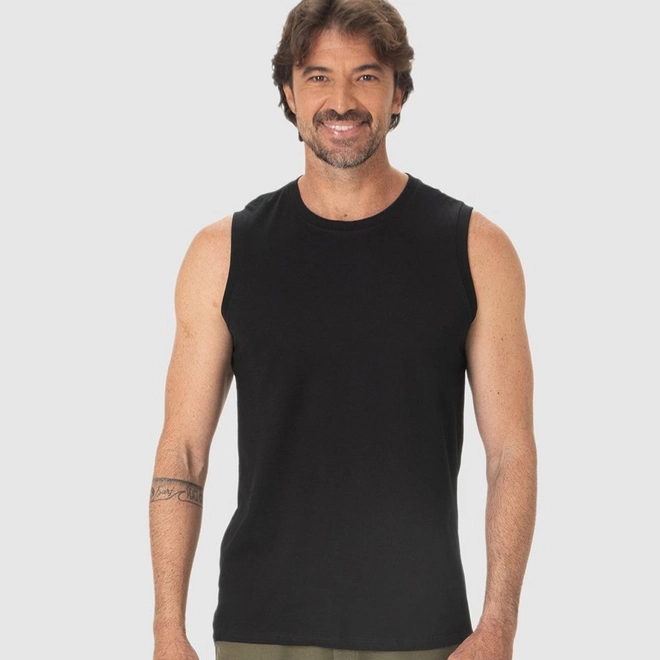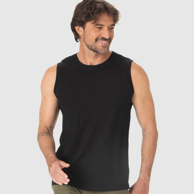 Regata Básica Masculina Cava Ajustada Em Algodão